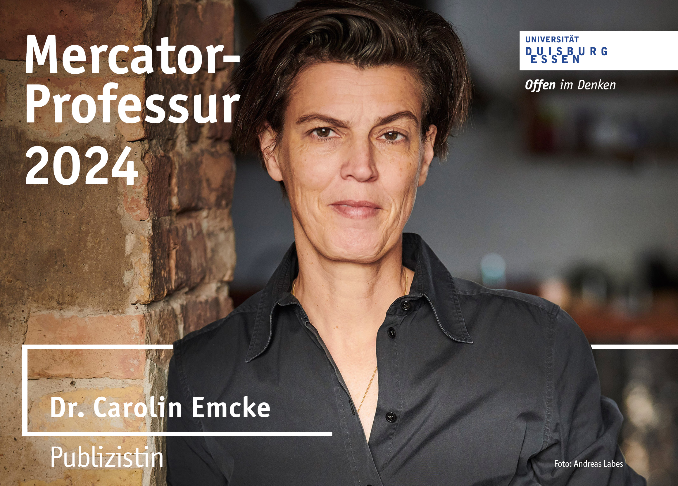 „Mit Dr. Carolin Emcke ist es uns gelungen, eine herausragende Philosophin und Publizistin, deren Haltung zu wichtigen Themen unserer Zeit uns Vorbild ist, als diesjährige Mercator-Professorin zu gewinnen. Ich sehe ihrer Vorlesung mit großer Erwartung entgegen“, so die Rektorin der Universität Duisburg-Essen, Prof. Dr. Barbara Albert.