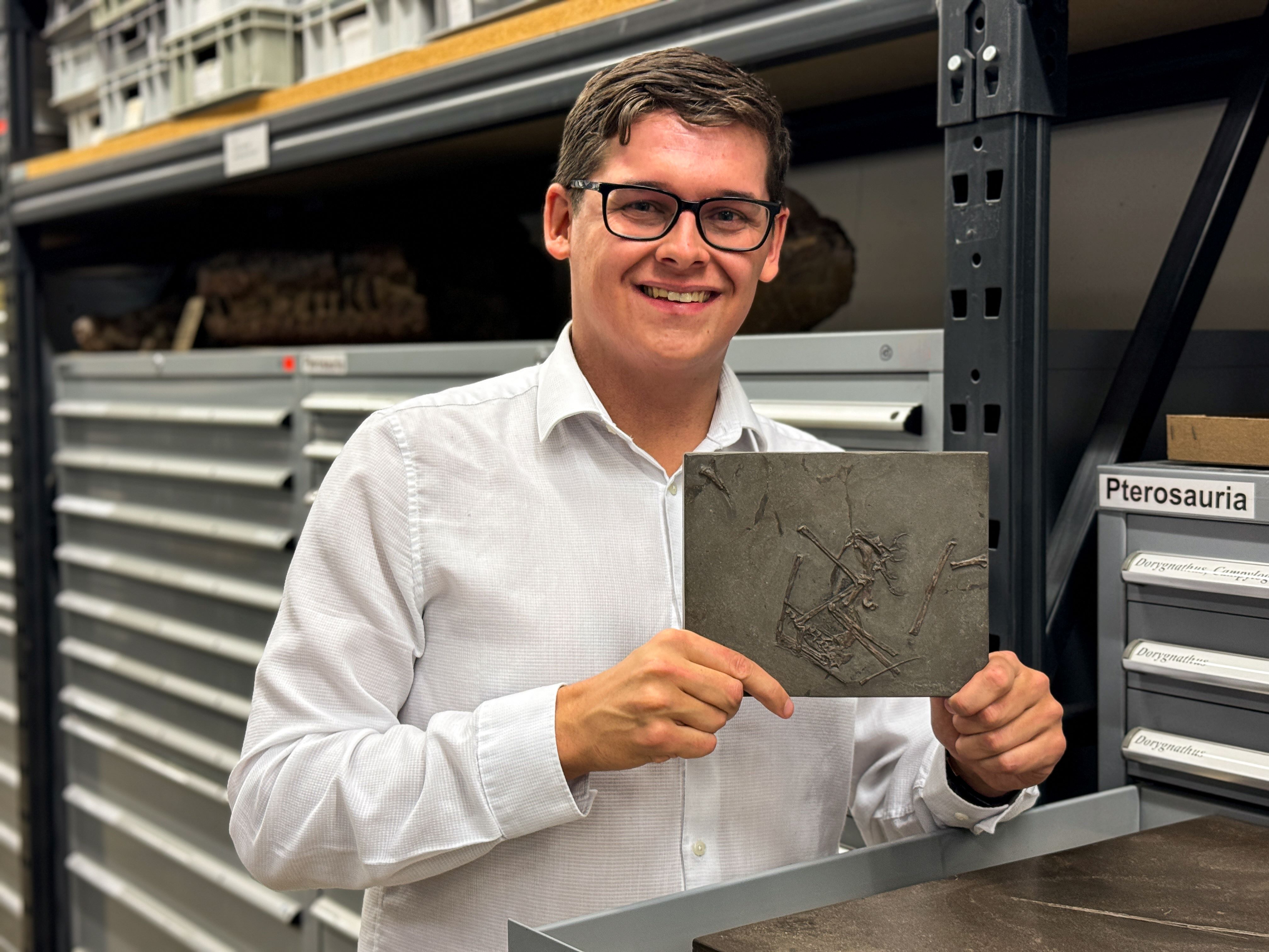 Dr. Samuel Cooper, Paläontologe am Staatlichen Museum für Naturkunde Stuttgart, untersuchte die Fossilien und analysierte die Reste im Magen der Saurier gemeinsam mit Kollegen von der Universität Portsmouth in Großbritannien, Professor David Martill und Dr. Roy Smith. Die in der Fachzeitschrift Journal of Vertebrate Paleontology veröffentlichten Ergebnisse zeigen, dass der Flugsaurier Dorygnathus kleine Fische fraß, während Campylognathoides urzeitliche Tintenfische verzehrte. Dieser älteste und weltweit erste eindeutige Nachweis für den Verzehr von Tintenfischen bei Flugsauriern verrät den Forschenden viel über die Lebensweise, Ökologie und Evolution der Tiere. Die etwa 182 Millionen Jahre alten Exemplare von Dorygnathus und Campylognathoides stammen aus dem Posidonienschiefer der Region um Holzmaden in Baden-Württemberg. Bisher war nichts über die Ernährung von Pterosauriern aus dieser Zeit bekannt.