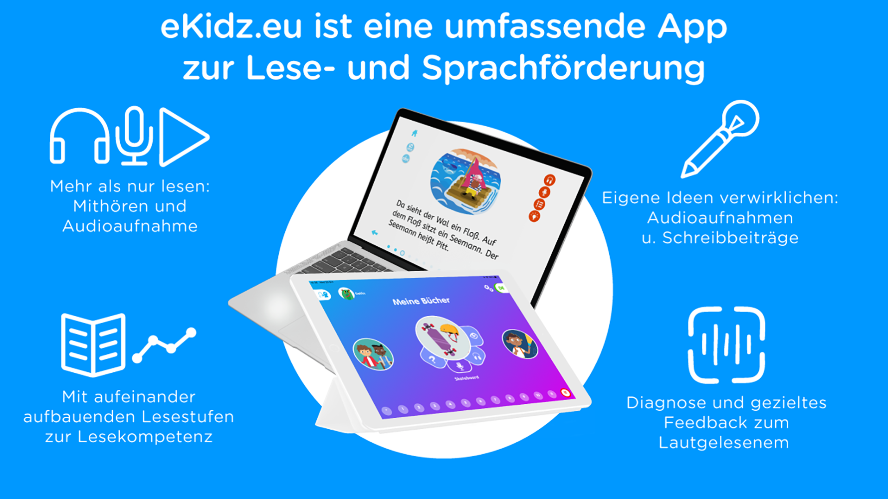 Mit Hilfe der eKidz-App sollen die Entwicklungen des Projekts im deutschsprachigen Raum Lehrkräften zugänglich gemacht werden. Die Basis-App ist bereits über Lizenzmodelle im Schuleinsatz erprobt. Die Datenerhebung zur neuartigen KI-Lesekompetenzbewertung erfolgt im Rahmen der bereits bekannten Übungsprogramme in der eKidz-App, bei denen Kinder u. a. Texte laut vorlesen. Lehrkräfte sollen damit entlastet werden, denn die App übernimmt anhand der regelmäßig erhobenen Daten bei Leseübungen die Bewertung der Leseleistung, gibt Feedback und verfolgt Fortschritte der Lernenden. Prof. Dr. Anita Schilcher von der Universität Regensburg betont: »Im Vergleich zu herkömmlichen Leseförderprogrammen ermöglicht die eKidz-App eine kontinuierliche Begleitung des Leselernprozesses und eine Rückmeldung des Lernfortschritts an die Kinder und die Lehrkräfte. Dieses engmaschige Feedback ist für das Lernen besonders günstig.«