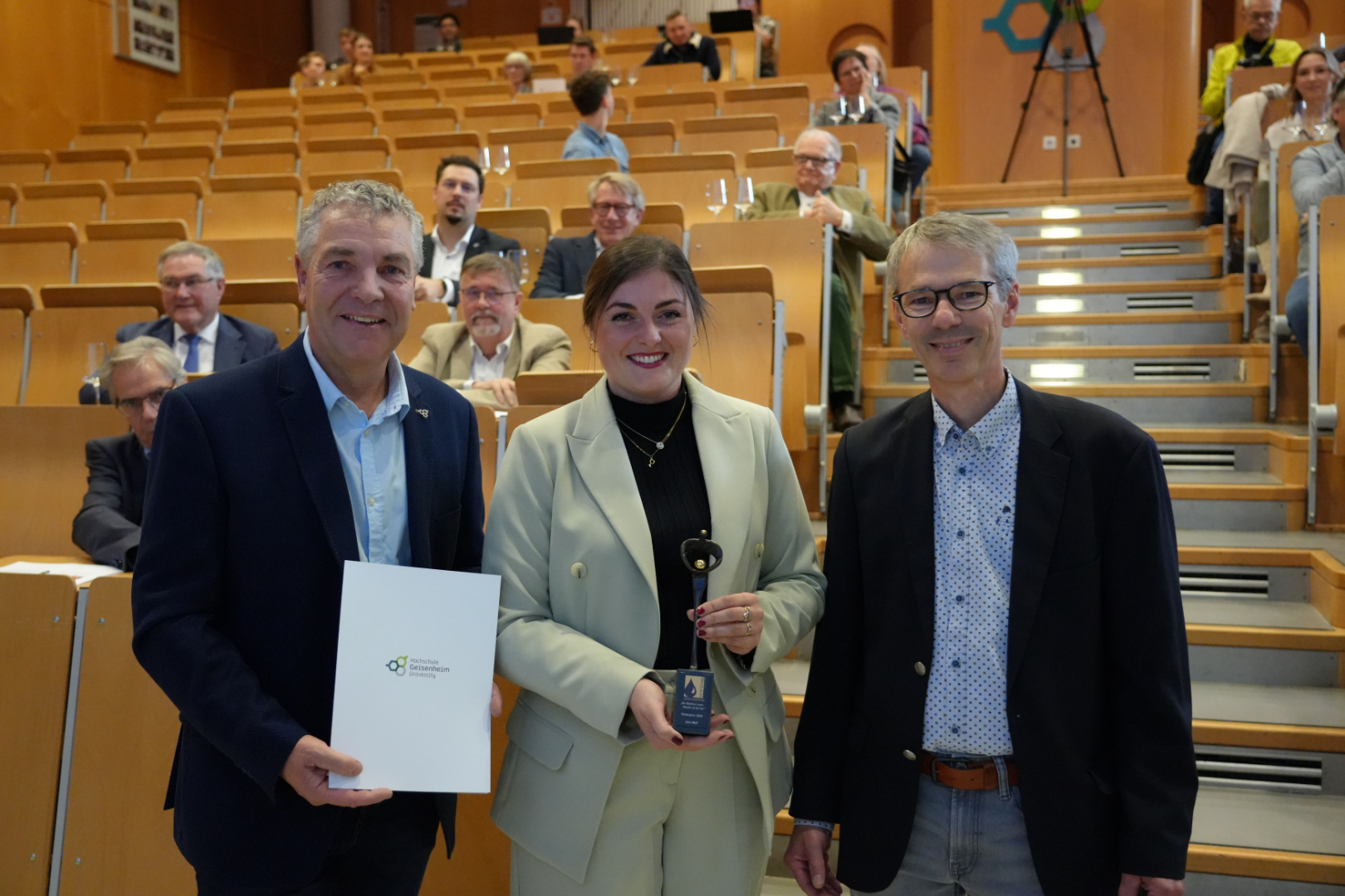 Am 25. Oktober 2024 nahm Julia Wolf die Urkunde und den Pokal feierlich aus den Händen von Dieter Erbslöh und Professor Jung entgegen. Im Anschluss stellte sie ihre Forschungsarbeit vor, ergänzt durch eine sensorische Verkostung. Die Anwesenden hatten die Möglichkeit, die theoretischen Ergebnisse direkt geschmacklich zu erleben. Wolf präsentierte eine Auswahl an Weinen der Weingüter Prinz, Ress, Barth und Kaufmann, um die sensorischen Unterschiede und Herausforderungen der VDP-Klassifikationen zu verdeutlichen.