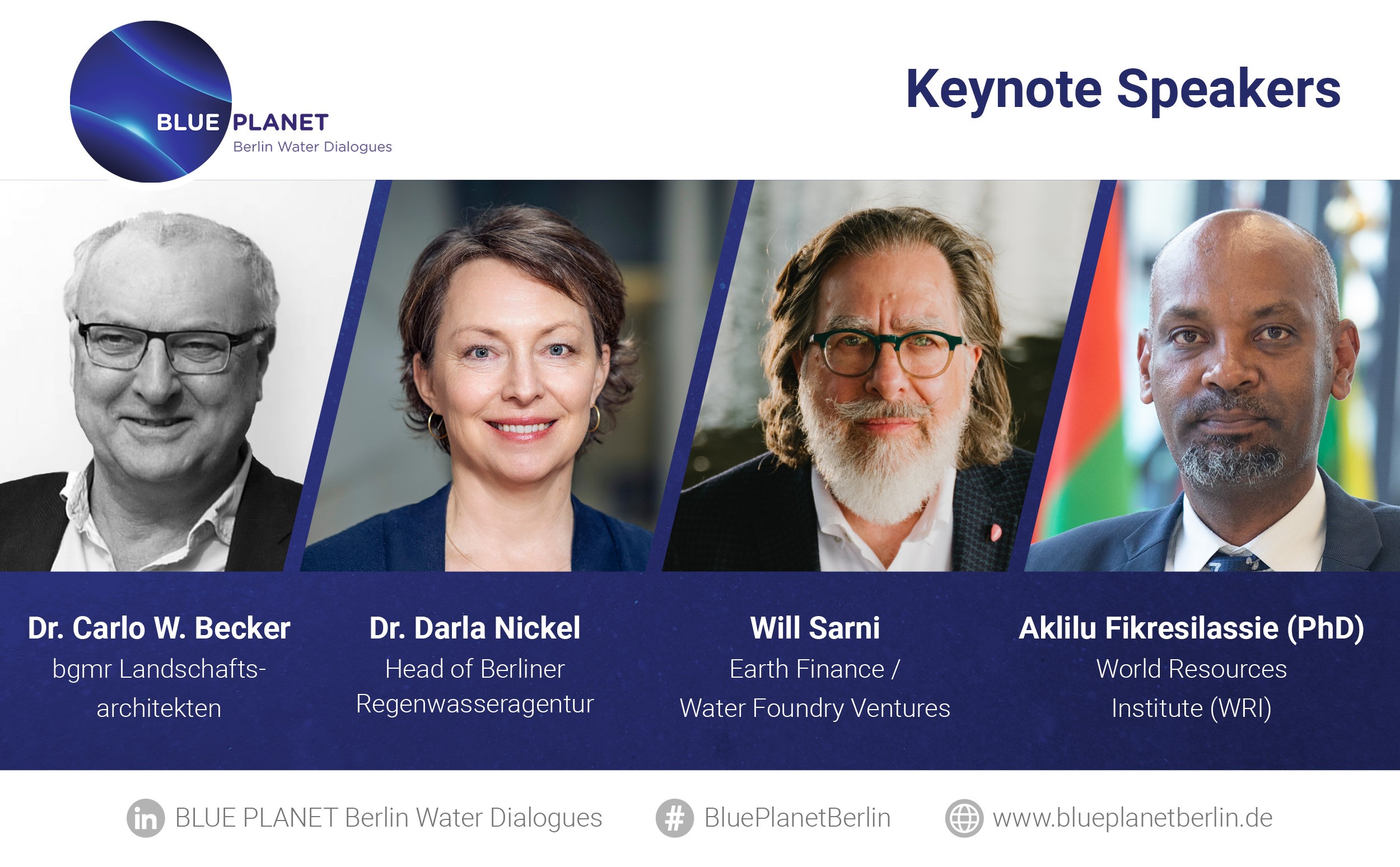 The BLUE PLANET Berlin Water Dialogues are set to return on November 28, 2024, with a focus on "Urban Water Resilience". International experts and key decision-makers from research, industry, and policy will converge online to explore pioneering approaches for resilient urban water systems as climate change demands a comprehensive rethinking of grey, blue, and green infrastructure. The event will kick off with an introduction from State Secretary Dr. Severin Fischer (Senate Department for Economic Affairs, Energy and Public Enterprises). Attendees will benefit from keynote presentations by thought leaders such as Will Sarni (Earth Finance, Water Foundry Ventures), Aklilu Fikresilassie, PhD (World Resources Institute Africa), Dr. Darla Nickel (Berlin Rainwater Agency), and Dr. Carlo W. Becker (bgmr Landschaftsarchitekten), sharing groundbreaking strategies and practical solutions. The conference is supported by the Berlin Senate Department for Economic Affairs, Energy and Public Enterprises.
