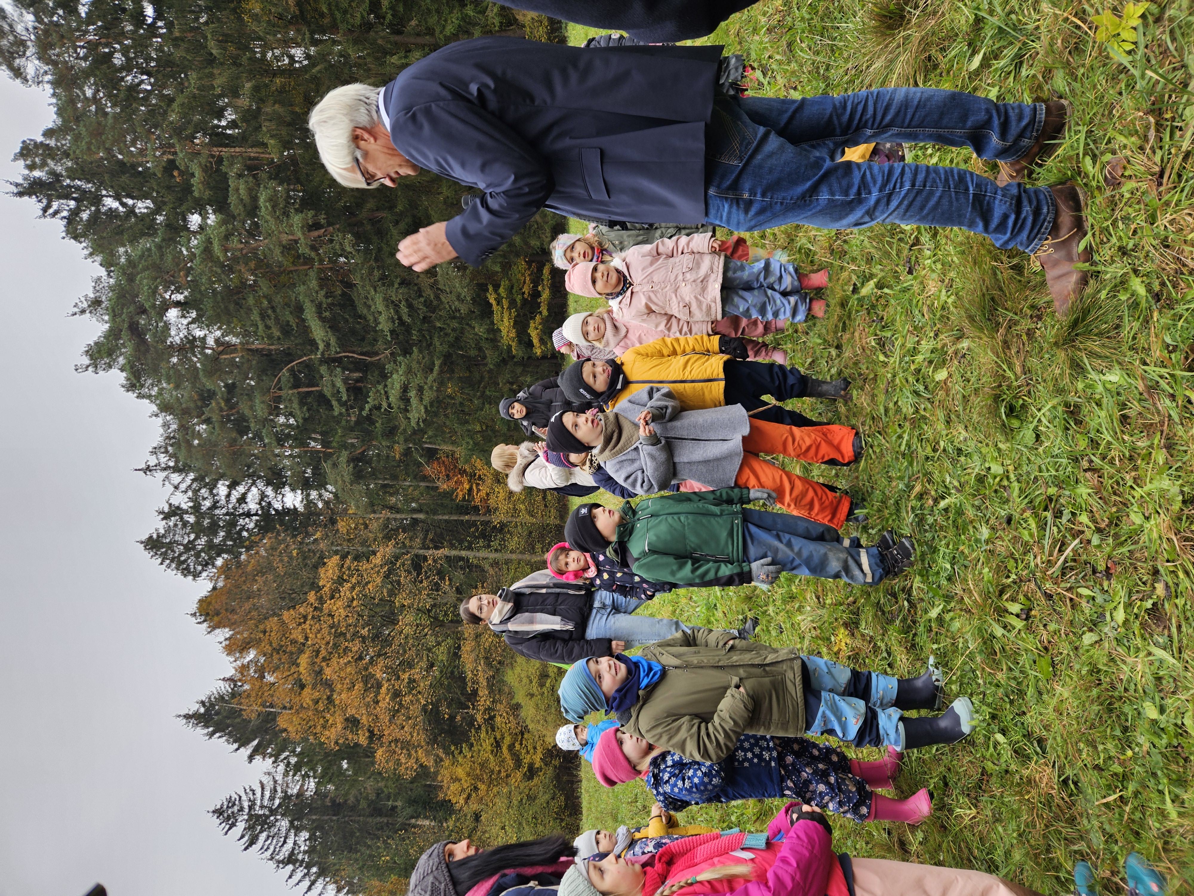 Neugierig inspizierte die Gruppe „Wackelzähne“ des Waldkindergartens Pinzberg (Kreis Forchheim) den aktuellen Stand eines Forschungsprojekts der Hochschule Coburg: Prof. Dr. Rainer Hirth leitet das Projekt zur „Entwicklung eines klimaneutralen, energieautarken, mobilen Raummodulsystems für Waldkindergärten“. Den innovativen Ansatz würdigte gestern beim Richtfest auch der Bayerische Minister für Umwelt und Verbraucherschutz, Thorsten Glauber.