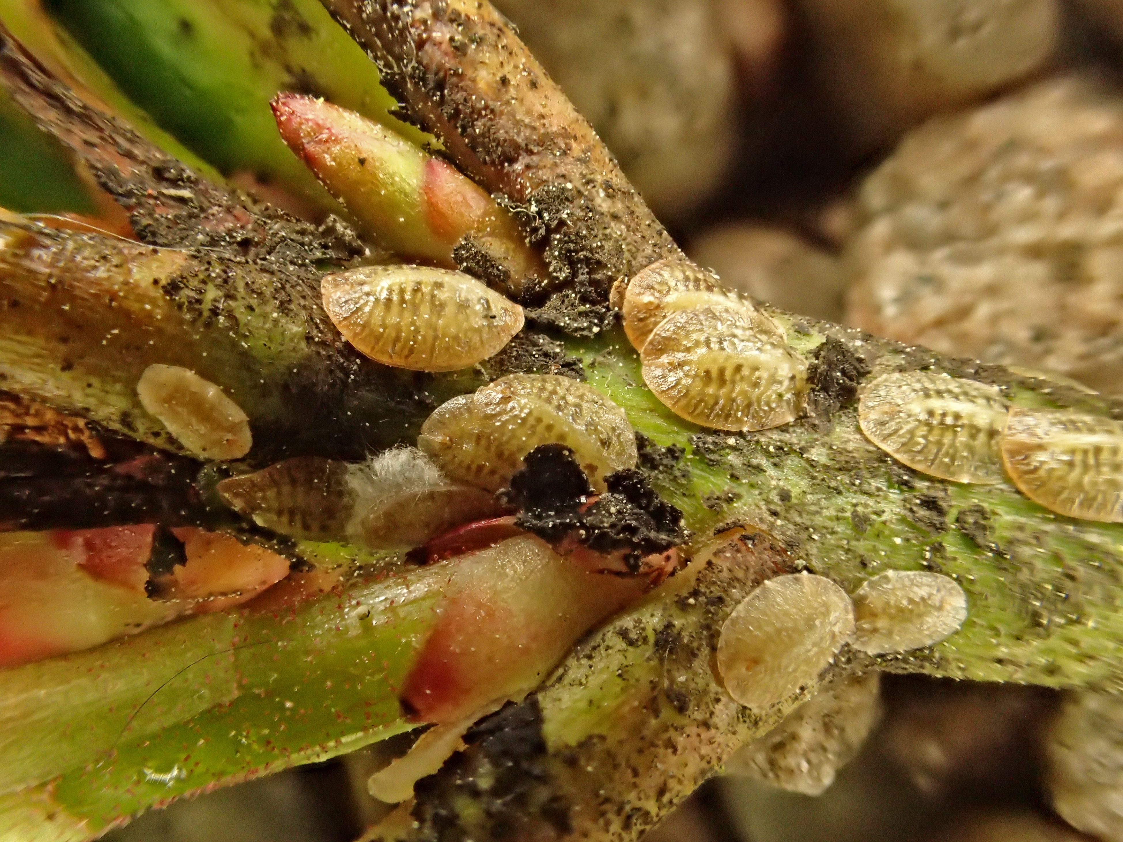 Das spezielle Forschungsinteresse Kahrers, der in seiner aktiven Zeit als Biologe an der AGES (Agentur für Gesundheit und Ernährungssicherheit) im Bereich Pflanzenschutz gearbeitet hat, gilt seit jeher den Schildläusen. Immer wieder werden ihm Proben zur Begutachtung und Artbestimmung vorgelegt oder zugeschickt, so auch vor etwa einem Jahr, als er eine Probe aus Dänemark bekam: Unbekannte Schildläuse hinterließen auf den Blättern von Rhododendron-Kulturen schmutzige, schwarze Beläge.