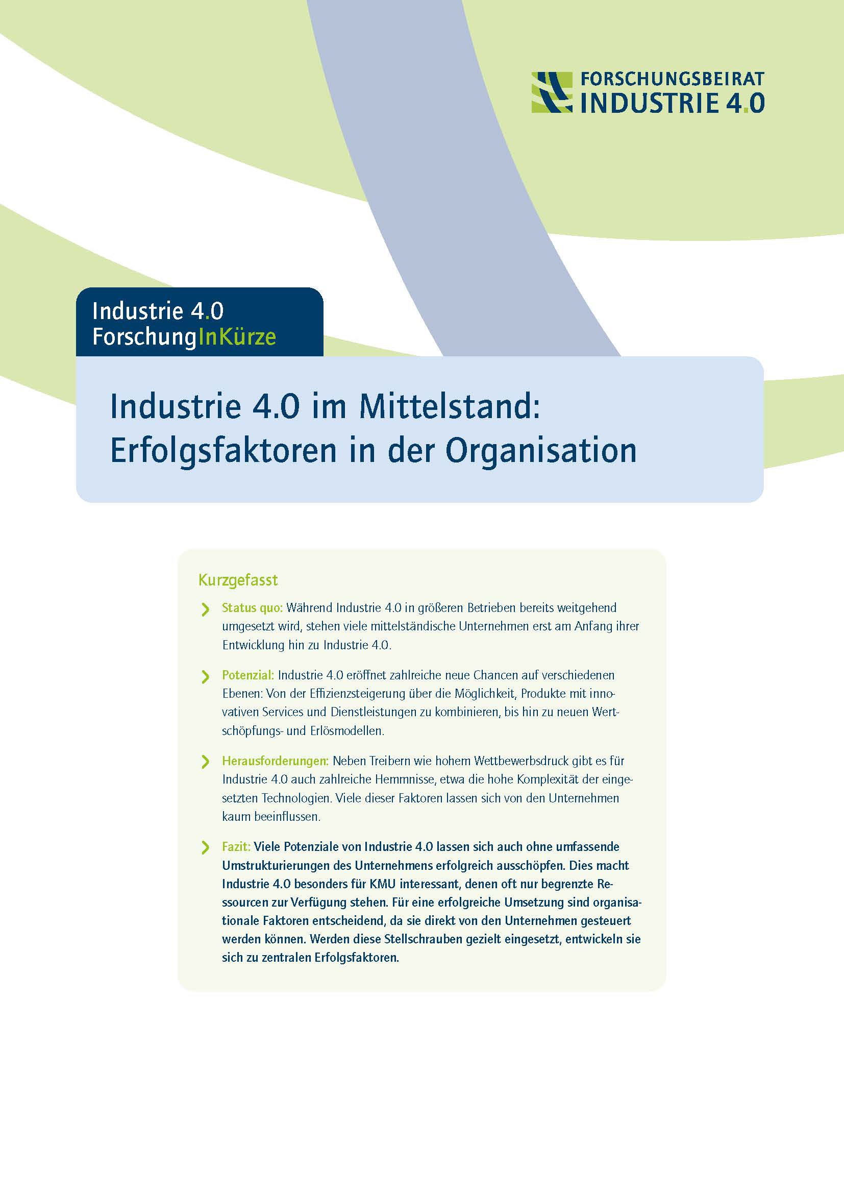 Kurzformat "Industrie 4.0 im Mittelstand: Erfolgsfaktoren in der Organisation" vom Forschungsbeirat Industrie 4.0
