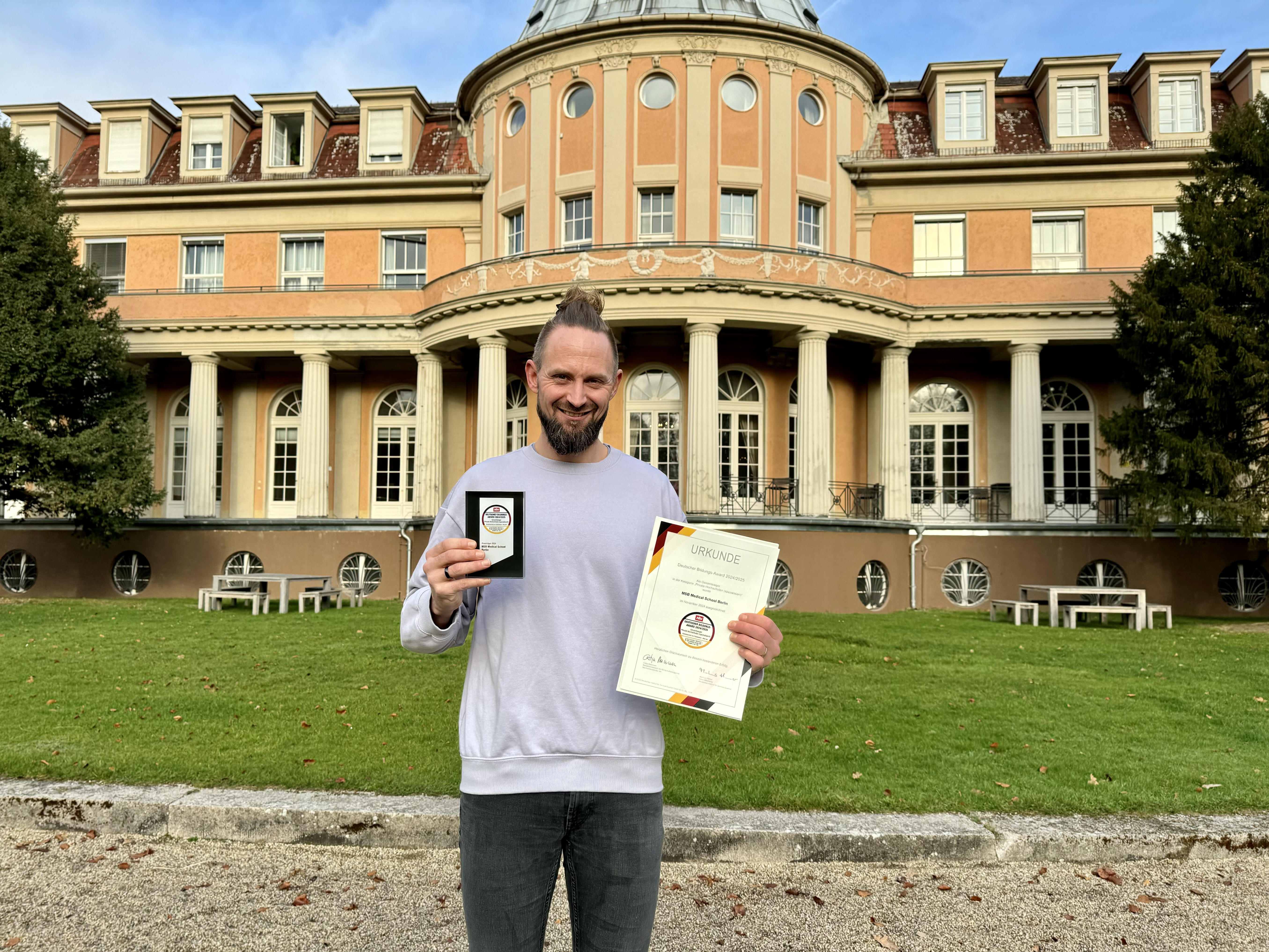 Der Deutsche Bildungs-Award wird jährlich vom Nachrichtensender ntv zusammen mit dem Deutschen Institut für Service-Qualität (DISQ) vergeben. Grundlage der Auszeichnung sind rund 38.000 Bewertungen von Studierenden und Absolventen, die mehr als 460 Bildungseinrichtungen aus ganz Deutschland beurteilt haben. Die MSB überzeugte in der Umfrage durch ihre hohe Qualität in der Lehre, ihre Praxisorientierung und den persönlichen Service, den sie ihren Studierenden bietet. 2023 wurde die MSB bereits in der gleichen Kategorie ausgezeichnet - damals nahm Prof. Dr. Max Happel, Prorektor für Forschung, den Preis bei der feierlichen Preisverleihung in Berlin entgegen.