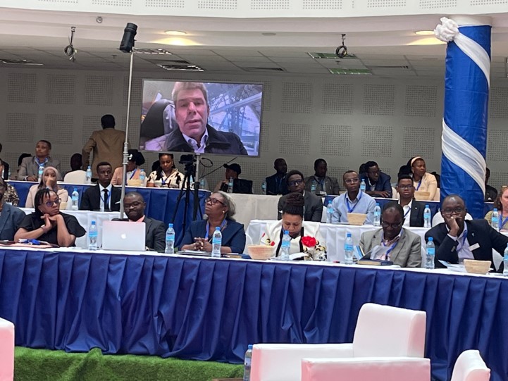 Bildtext: Neben einer Videoschalte zum deutschen Botschafter in Tansania, Dr. Thomas Terstegen, wandte sich auch Uni-Präsident Prof. Dr. Thomas Nauss (Bild) per Video an die Konferenzteilnehmenden. Foto: Harald Renz