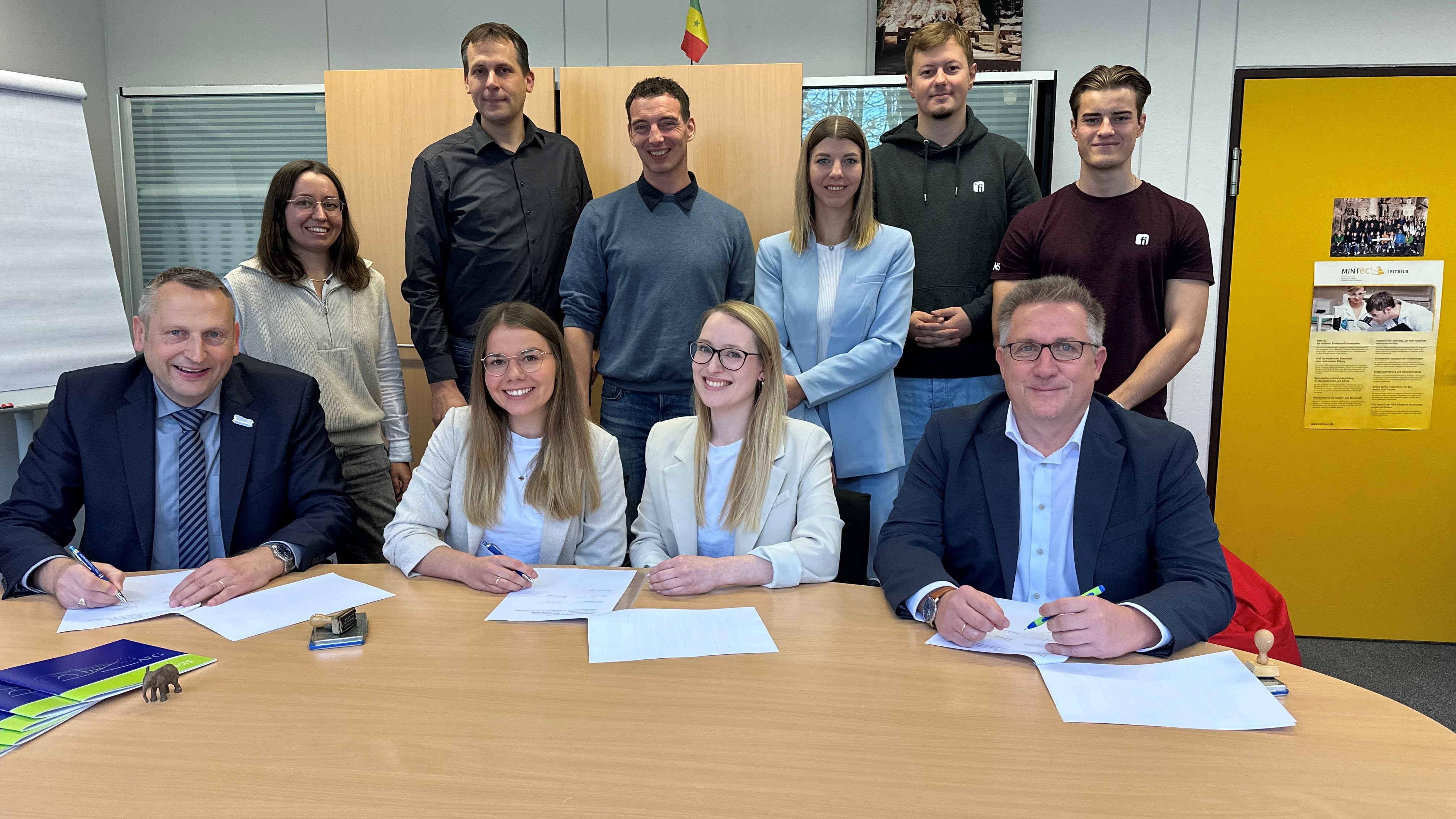 (Werne, November 2024). Eine wegweisende Kooperationsvereinbarung wurde am 22. November 2024 im Anne-Frank-Gymnasium in Werne unterzeichnet. Schulleiter Marcel Damberg, Prof. Dr. Peter Britz, Präsident der Hochschule Weserbergland (HSW), sowie Diana Gerstenberger und Alina Möllenbrink, Ausbildungsverantwortliche bei der Finanz Informatik (FI), trafen sich im Gymnasium, um den Beginn einer zukunftsweisenden Zusammenarbeit im Bereich der Studien- und Berufsorientierung zu besiegeln. Diese Kooperation umfasst nicht nur den Austausch von Wissen, sondern auch konkrete Maßnahmen, um den Schülerinnen und Schülern praxisnahe Einblicke in die Berufswelt zu ermöglichen.
