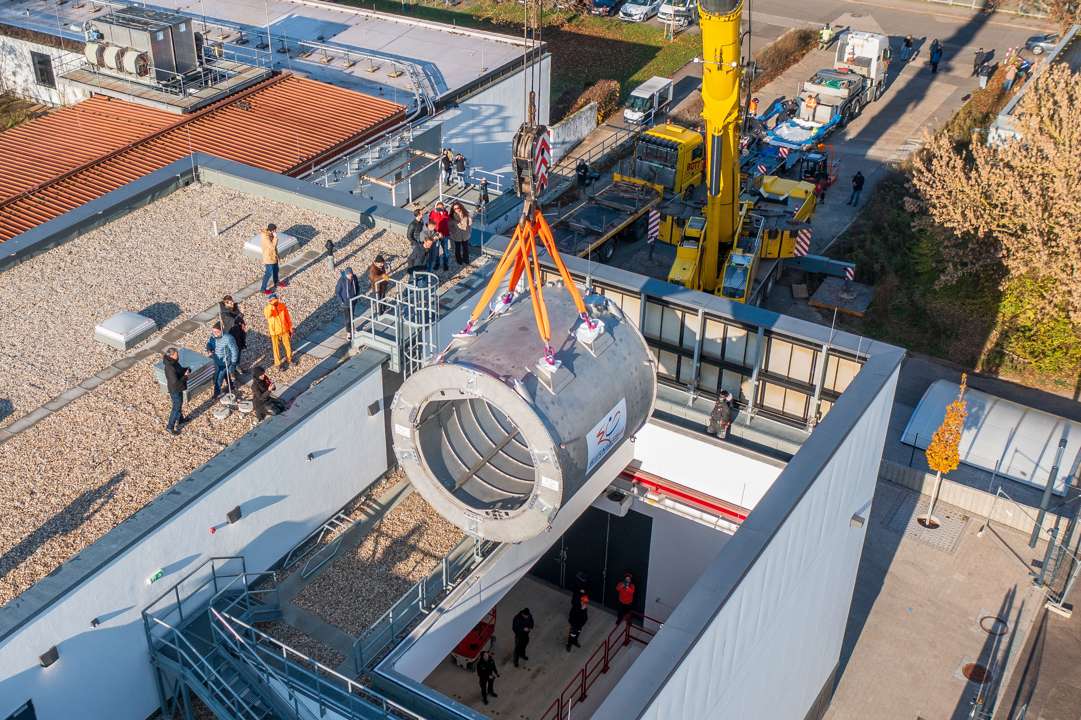 Supraleitende Kernkomponente für internationales P2-Experiment in unterirdischer Halle in zehn Metern Tiefe installiert