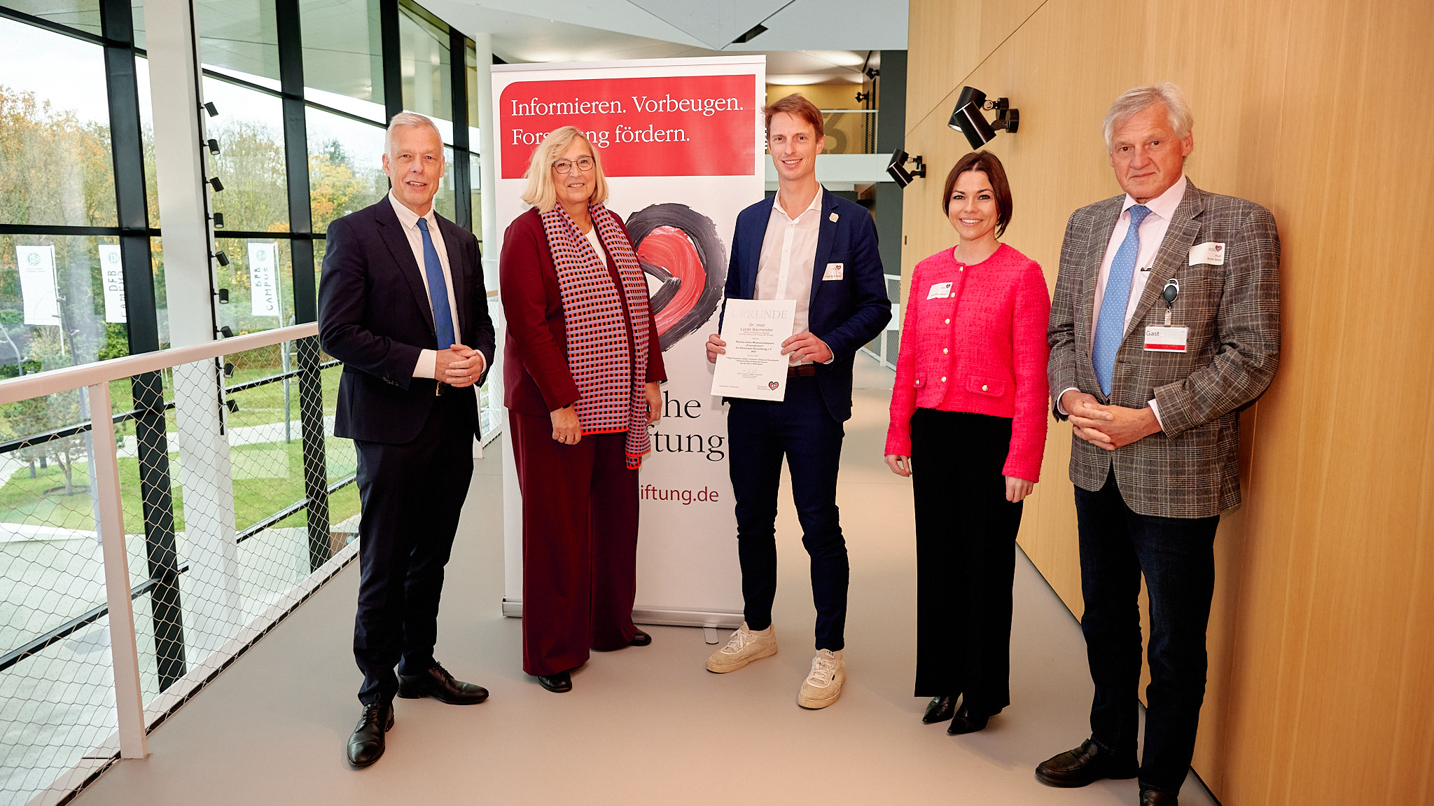 „Die Forschungsarbeit von Dr. Lucas Bacmeister und Kollegen trägt wesentlich zum besseren Verständnis von kardiovaskulären Biomarkern im Blut von Frauen in der Schwangerschaft bei. Zugleich haben die Erkenntnisse das Potenzial, zu einer frühzeitigen Prävention von ernsthaften Herz-Kreislauf-Komplikationen – insbesondere durch die Präeklampsie – bei schwangeren Frauen und ihrem ungeborenen Kind beizutragen“, erklärt der Kardiologe Prof. Dr. med. Thomas Voigtländer, Vorstandsvorsitzender der Deutschen Herzstiftung, bei der Vergabe des „Wissenschaftspreises Frauenherzen“ gemeinsam mit der Stifterin und Namensgeberin des Preises Martina Grote in Frankfurt am Main. „Es ist mir als Stifterin des Preises eine große Freude die Forschung auf diesem Feld der Kardiologie gezielt zu unterstützen und damit sichtbarer zu machen“, betonte Martina Grote bei der Überreichung des Preises. „Mit diesem Wissenschaftspreis unterstützen wir innovative Forschungsarbeiten, deren Ziel es ist, mögliche Unterschiede etwa bei den Risikofaktoren für Herzerkrankungen zwischen Frauen und Männern mehr ins Bewusstsein zu rücken und Frauen besser zu informieren, damit sie sich gezielter um ihre Herzgesundheit kümmern.“