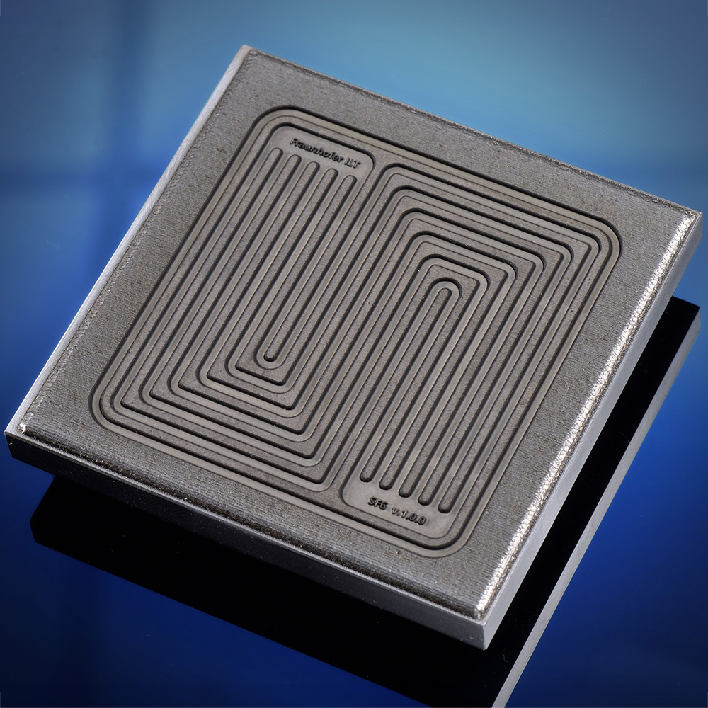 Um die neue EHLA-basierte Prozesskette praxisnah zu demonstrieren, hat das Team einen Demonstrator aufgebaut, auf dem es einfachen Baustahl (St37) im EHLA-Prozess mit dem Schnellarbeitsstahl 1.3343 endkonturnah beschichtet hat. Für die Endbearbeitung werden am Fraunhofer ILT sowohl das konventionelle Fräsen als auch das Strukturieren mit Ultrakurzpulslasern eingesetzt. Aufgrund des hohen Werkzeugverschleißes bei der mechanischen Endbearbeitung von Werkstoffen hoher Härte, ist das berührungslose Laserverfahren von hohem industriellem Interesse. »Es geht uns im Projekt um den Nachweis, dass die gesamte Prozesskette von der Beschichtung bis zur Strukturierung der Biopolarplatten bereits mit seriennahen Verfahren hinterlegt ist«, erklärt Maischner. Die Forschenden wollen bereits bis Ende dieses Jahres auf einem Versuchsstand des Fraunhofer IPT die Belastbarkeit und Verschleißfestigkeit unterschiedlicher Umformwerkzeuge testen. Dabei nehmen sie seriennahe Umformprozesse in den Fokus, bei denen es gilt, eine Bipolarplatte pro Sekunde zu stempeln – wie es eine effiziente industrielle Produktion erfordert. »Die Methode erlaubt es uns, die Standzeit von EHLA-beschichteten Werkzeugen realistisch zu testen«, erklärt Maischner.