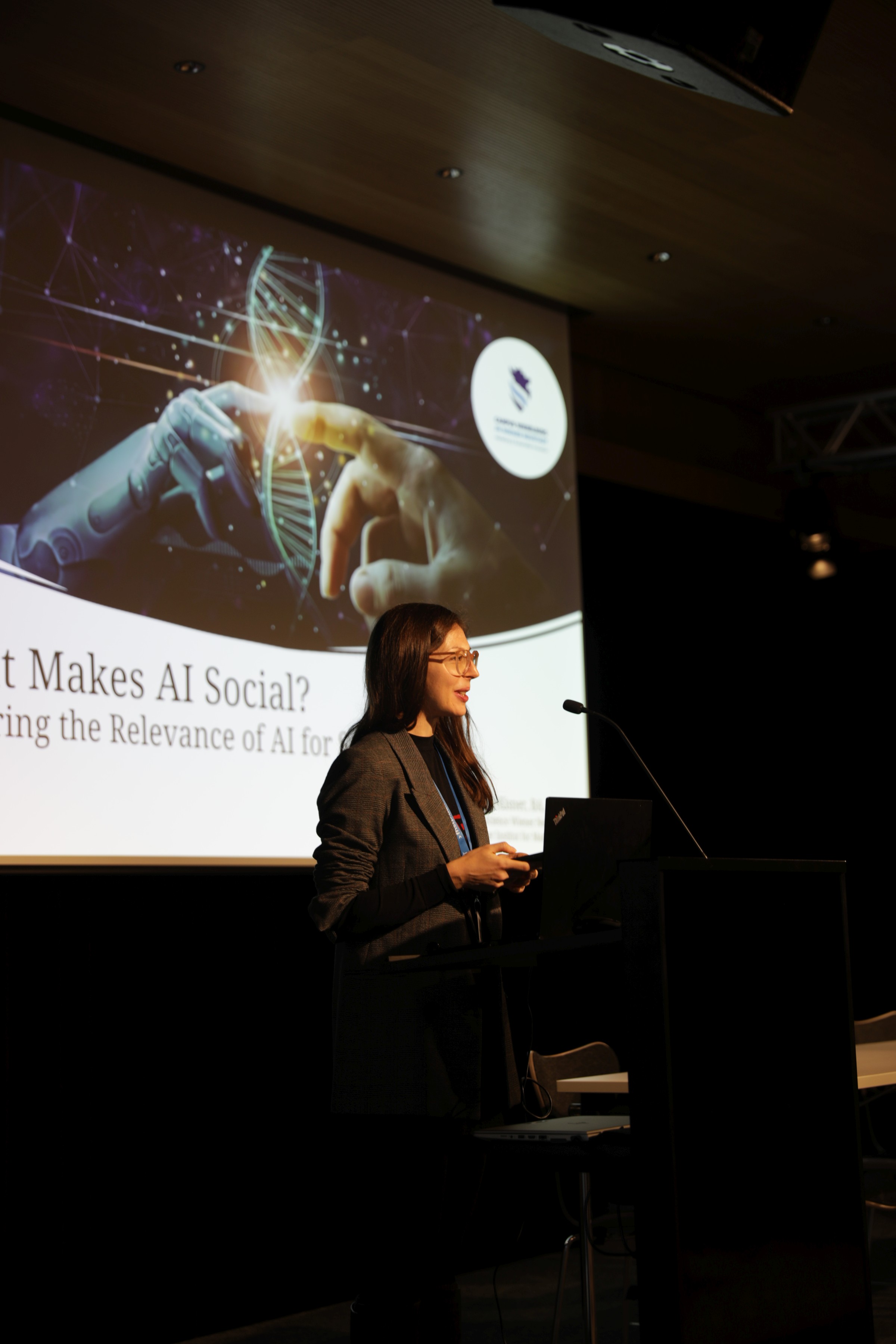 Julia Eisner von der FH Wiener Neustadt hielt eine Keynote zu „What Makes AI Social? Exploring the Relevance of AI for Social Science“: „Künstliche Intelligenz ist längst mehr als nur eine technologische Innovation – sie ist eine transformative Kraft, die Forschung und Gesellschaft nachhaltig beeinflusst. Dabei entstehen nicht nur neue Fragestellungen, sondern auch bewährte Themen werden in einem neuen Kontext diskutiert. Insbesondere die Präsenz von generativen KI-Tools und speziell kommunikativer KI bringt erhebliche gesellschaftliche und ethische Herausforderungen mit sich. Um diesen zu begegnen, ist interdisziplinäre Zusammenarbeit entscheidend, insbesondere auch durch die Einbindung sozial- und geisteswissenschaftlicher Perspektiven.“