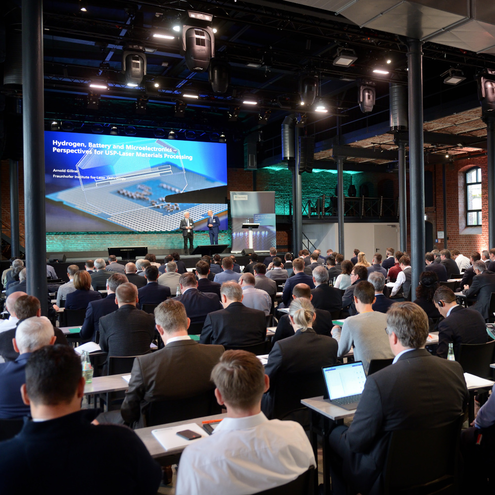 Traditionally, users from sectors such as automotive, machine tools, the consumer goods industry and electronics meet at the UKP Workshop. For them, this technology is particularly attractive as it is not only extremely precise, down to the sub-micrometer range, but also quite independent of material properties. New methods for parallelization allow users to manufacture continuously with high throughput, for example, when processing semiconductor materials or structuring battery electrodes. Large structured surfaces will also play a key role in the practical topic of hydrogen.