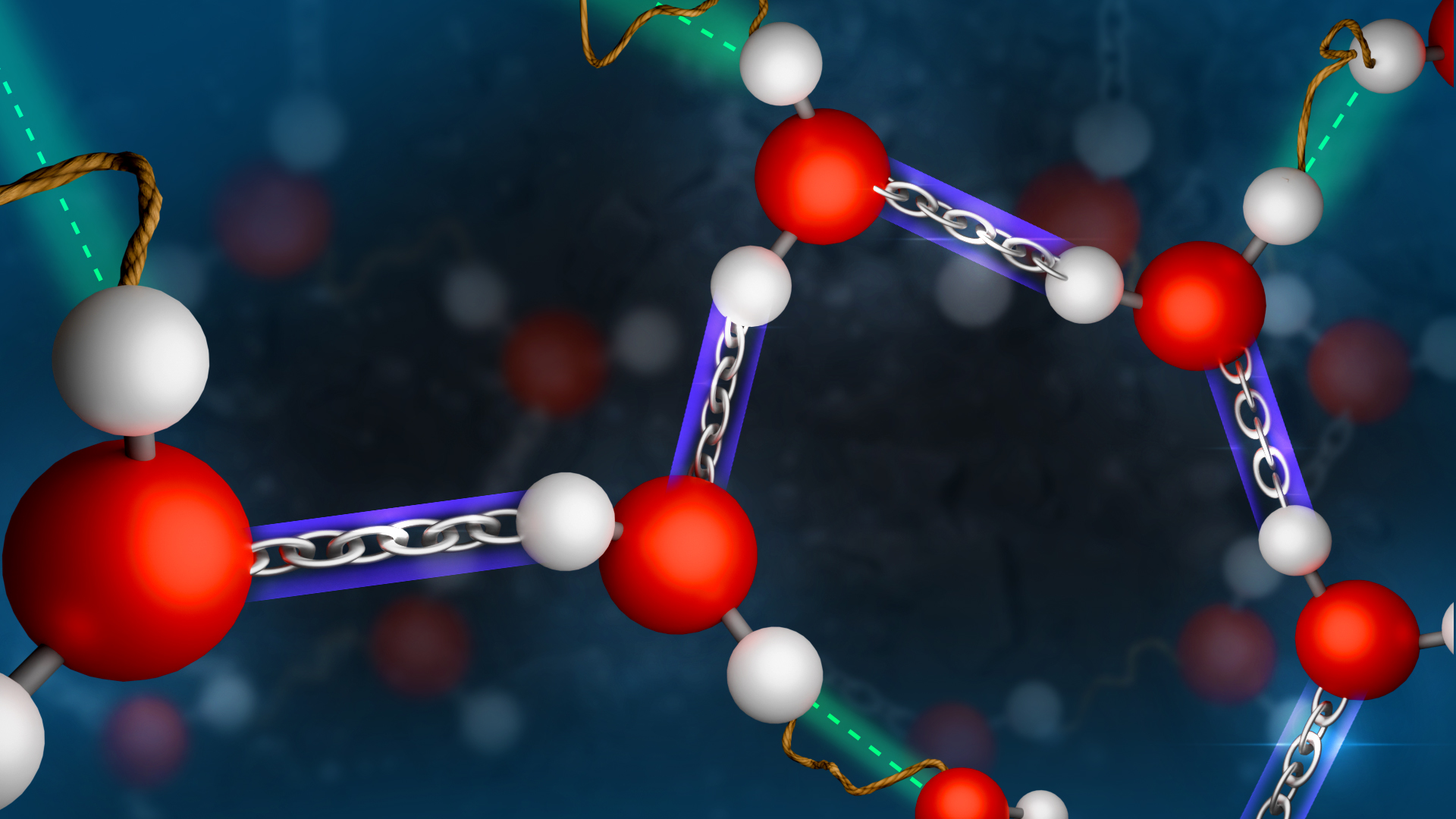 These alternating bond distances lead to structuring of the nominally disordered liquid: if you move from one water molecule to the next and to the one after that, there is always a strongly bonded neighboring molecule. As a result, structures such as rings or chains of water molecules can form in the liquid. The structure of liquid water is therefore not just a random arrangement of individual water molecules but follows certain rules.