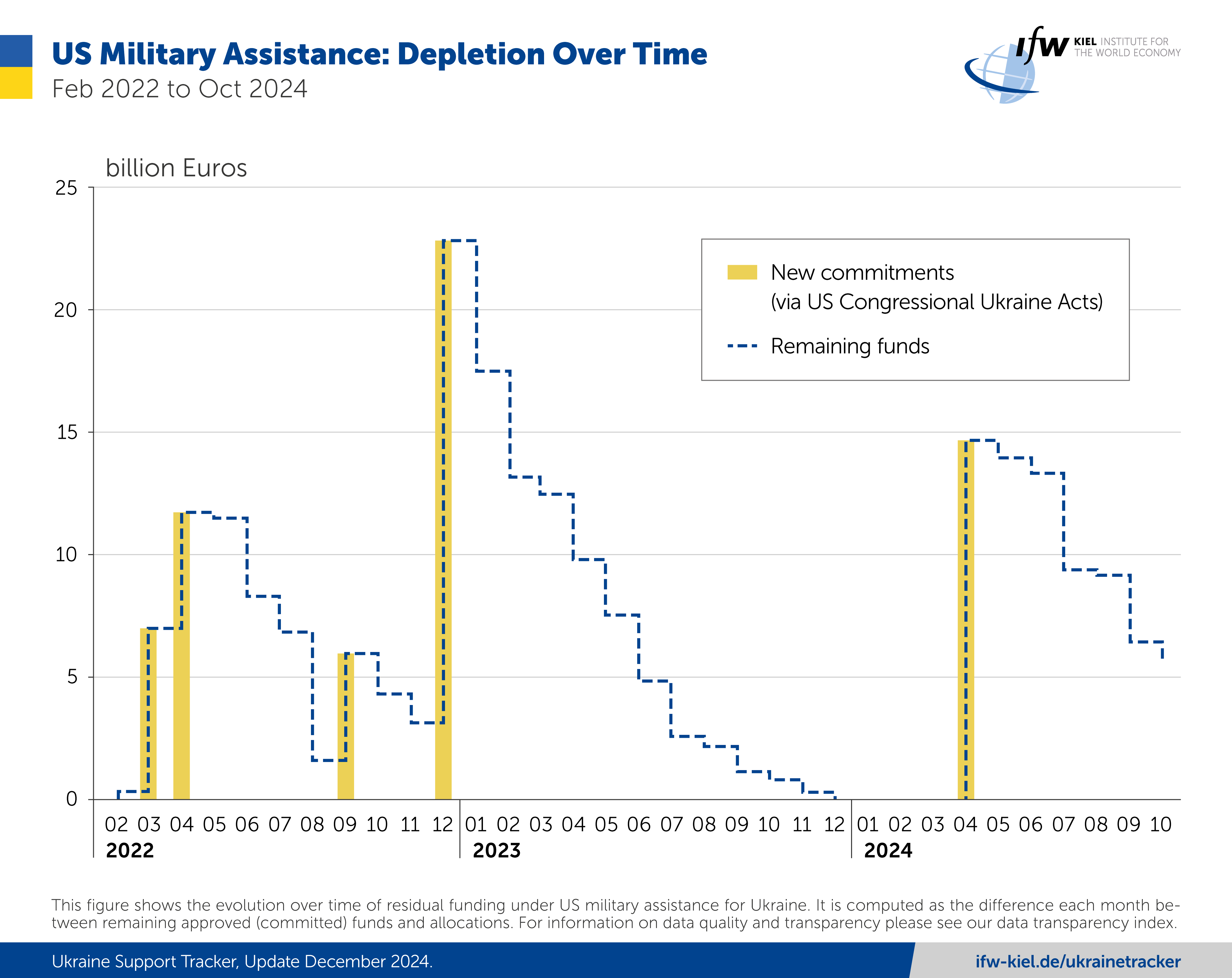 “President Biden’s administration continues to contribute to Ukraine’s military defense,” said Trebesch. “However, with the current funding due to end, all eyes are now on the incoming US administration and its willingness to support Ukraine.”