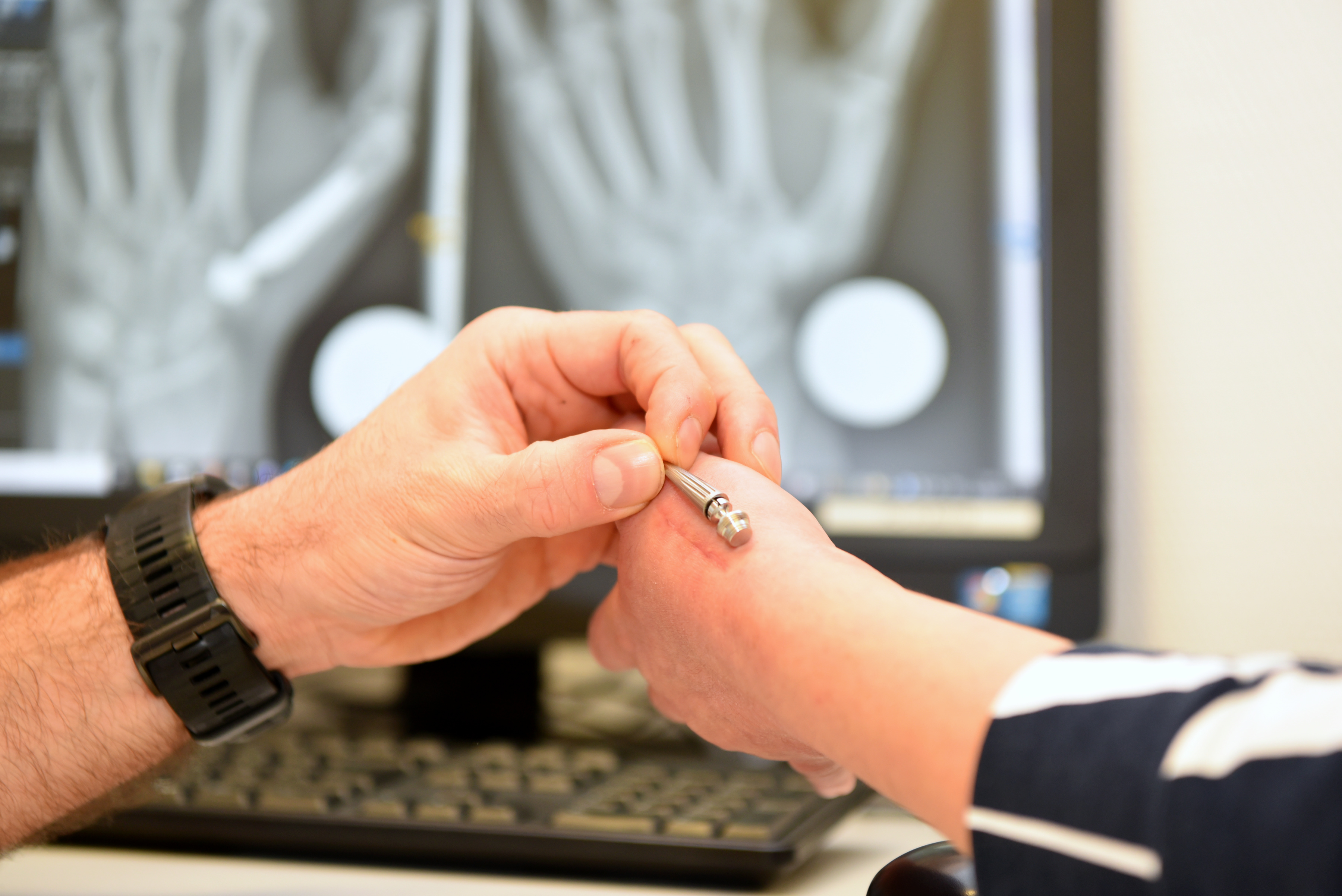 „Unsere Erfahrungen mit diesem relativ neuartigen Verfahren sind sehr positiv“, sagt Dr. Patrick Harenberg, Oberarzt der Klinik für Plastische Chirurgie und Handchirurgie. „Nach der Prozedur können die Patienten den Daumen im Allgemeinen zügig wieder normal und ohne Schmerzen bewegen – und gewinnen so ein großes Stück Lebensqualität zurück.“ Eine Rhizarthrose kann erhebliche Einschränkungen bedeuten. Sie entsteht, wenn der Gelenkknorpel im Daumensattelgelenk geschädigt und verschlissen ist. Dieses Gelenk befindet sich Übergang des Handgelenks zum Daumen und spielt eine zentrale Rolle, um beispielsweise Greifbewegungen auszuführen. Betroffene können diese Funktionen oft nur stark eingeschränkt ausführen und leiden mitunter an erheblichen Schmerzen, weil die Gelenkflächen durch den Knorpelverlust ungeschützt aufeinander reiben.