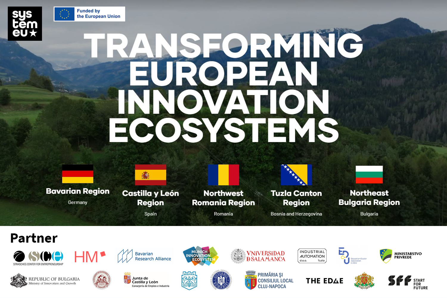 15 führende europäische Organisationen haben sich zusammengeschlossen, um die Zukunft der Innovation in fünf verschiedenen Regionen neu zu gestalten – Bayern, Siebenbürgen, Castilla y León, Tuzla Canton und Varna. Mit dem Projekt SYSTEMEU der Europäischen Kommission bündelt diese zukunftsweisende Allianz ihre Ressourcen und ihr Fachwissen, um Innovationslücken zu schließen, den Wissensaustausch voranzutreiben und sich für einen integrativen Fortschritt in Technologie und Gesellschaft einzusetzen. Bei SYSTEMEU geht es nicht nur um Innovation, sondern auch darum, das gesellschaftliche Wohlergehen in den Innovationsprozess zu integrieren, wobei eine klare Ausrichtung auf die Neue Europäische Innovationsagenda und andere wichtige EU-Strategien erfolgt.
