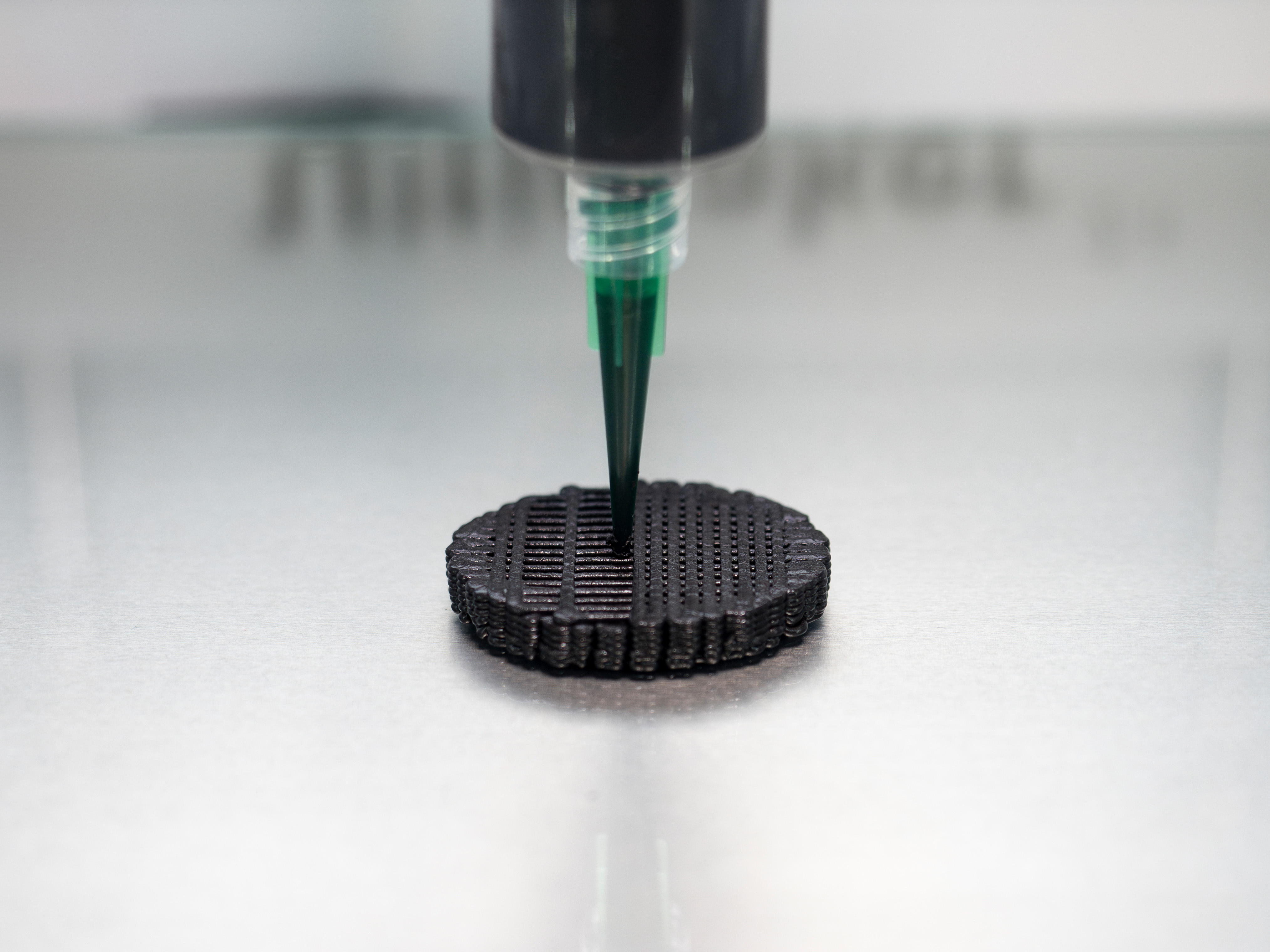 Dabei werden die Pilze nicht etwa in die Batterie «gepflanzt», sondern sind von Anfang an ein integraler Bestandteil der Zelle. Die Komponenten der Pilzbatterie werden nämlich mittels 3D-Druck hergestellt. Das erlaubt den Forschenden, die Elektroden so zu strukturieren, dass die Mikroorganismen möglichst einfach an die Nährstoffe kommen. Dafür werden die Pilzzellen unter die Drucktinte gemischt. Einfacher gesagt als getan: «Es ist anspruchsvoll genug, ein Material zu finden, in dem die Pilze gut wachsen», sagt Gustav Nyström, Leiter des «Cellulose and Wood Materials» Labors. «Die Tinte muss sich dann aber auch gut extrudieren lassen, ohne dass die Pilzzellen dabei sterben – und natürlich sollte sie noch elektrisch leitfähig und biologisch abbaubar sein.»