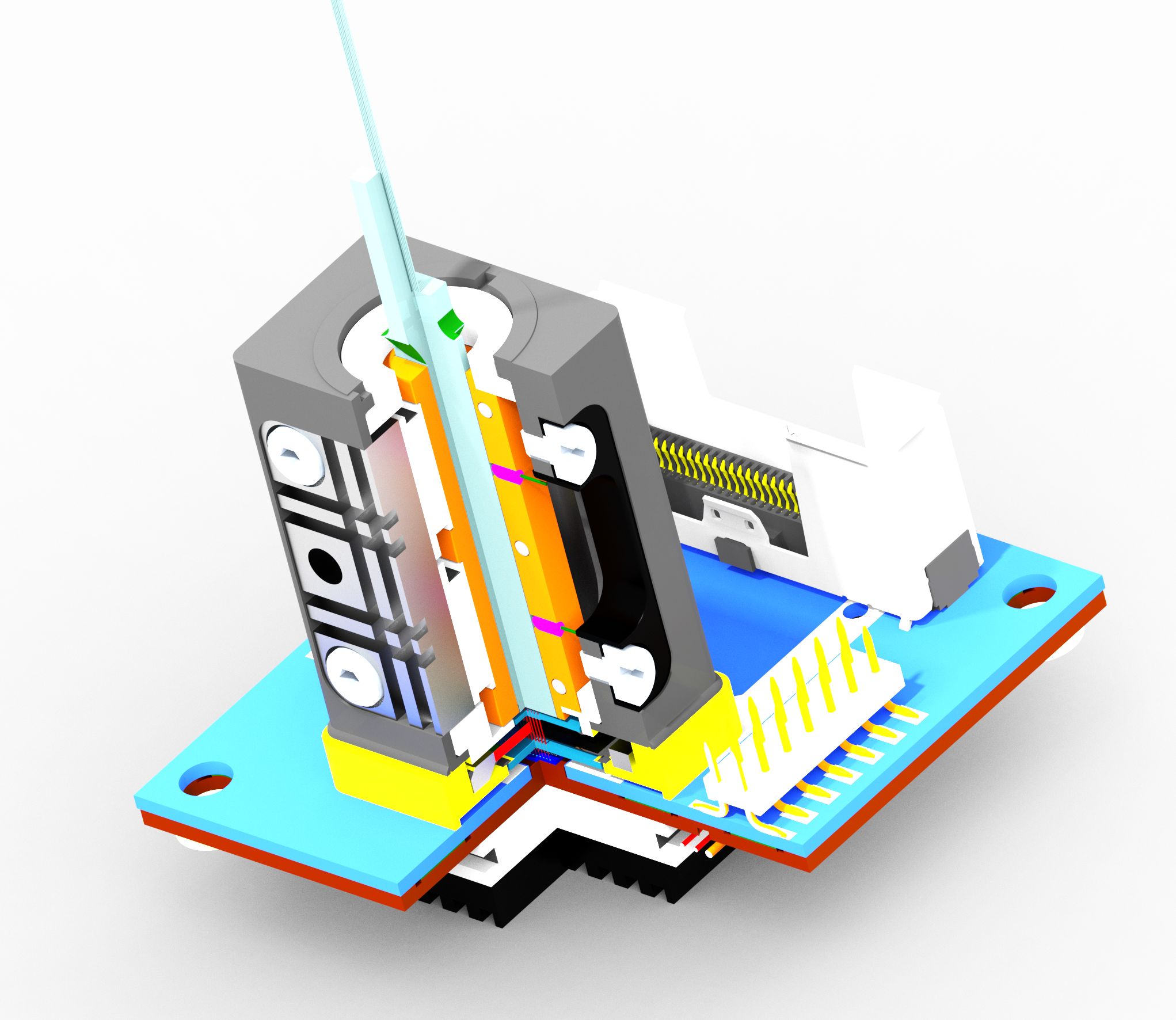 Die integrierte Digital-Analog-Wandlung, entwickelt in Kooperation mit der TU Ilmenau, erlaubt eine Pulsfolgefrequenz von bis zu 5 GHz. Es wird erwartet, dass dieses Signal von einem zusätzlichen Quantenzufallszahlengenerator stammt. Das optische System der Quelle ist in einer KOVAR-Box mit niedrigem Ausdehnungskoeffizienten untergebracht.