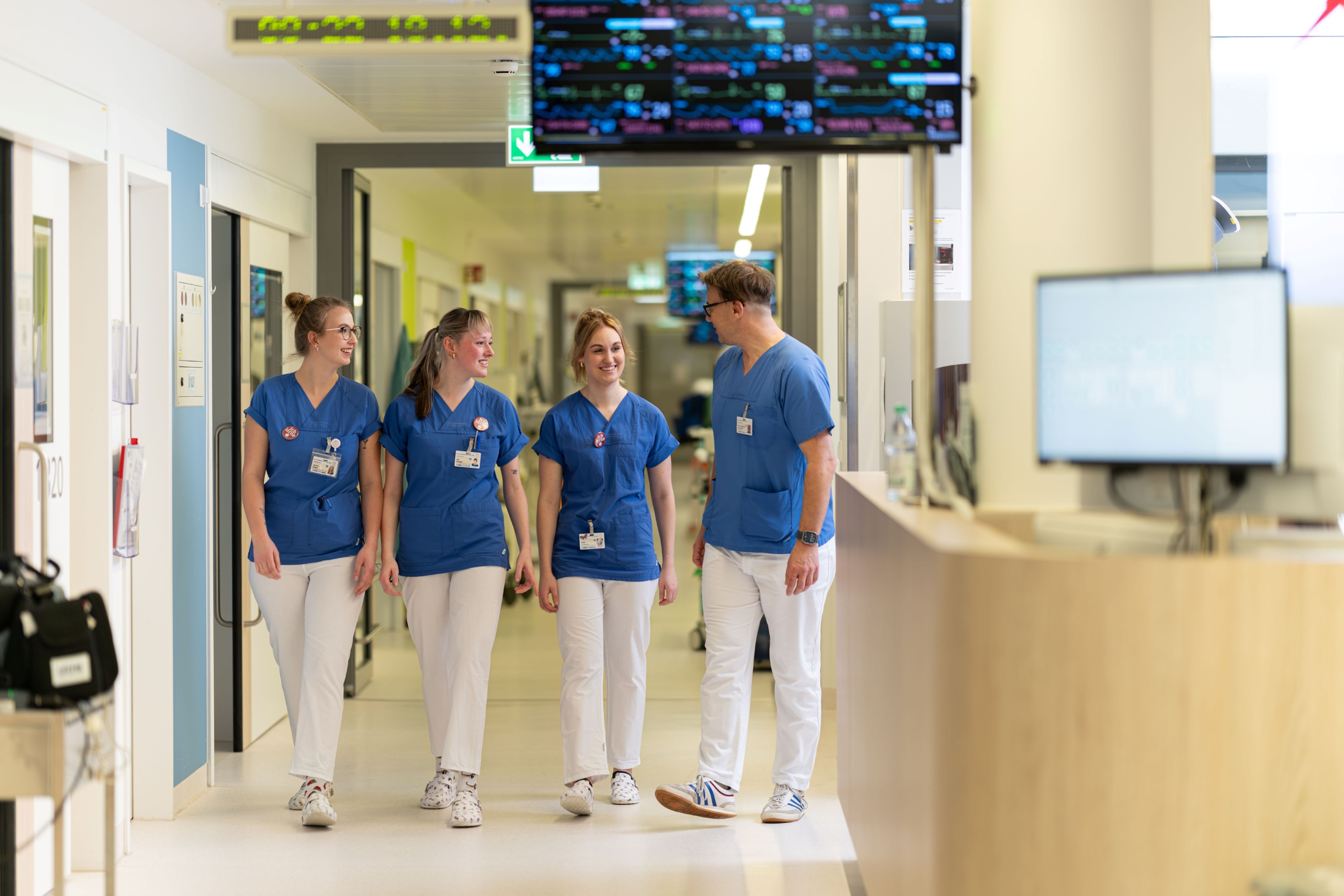 Zu ihnen gehören auch Janice Beger, Ida Zilliges und Sally Noack, die bereits im dritten Lehrjahr eine Ausbildung in der generalistischen Pflege absolvieren. Was sie an ihrem künftigen Beruf besonders schätzen? „Der direkte Kontakt zu den Menschen ist toll“, sagt Ida, die ihr Interesse an der Ausbildung auf der Messe KarriereStart entdeckte – und seitdem begeistert ist. Ob Kinderklinik oder Intensivstation – am Uniklinikum lernen die angehenden Pflegefachkräfte alle Facetten des Pflegeberufs kennen. Die Auszubildenden begleiten Mütter in den ersten Tagen nach der Geburt ihres Babys, kümmern sich aber auch um schwer erkrankte Menschen. „Sehr gut gefällt mir die interdisziplinäre Zusammenarbeit mit anderen Berufsgruppen“, berichtet Ida. Janice ergänzt: „Die Dankbarkeit der Patientinnen und Patienten zeigt uns jeden Tag, wie wichtig unsere Arbeit ist.” Die Hochschulmedizin Dresden bietet zudem viele Entwicklungsmöglichkeiten. Sally hat ihre Liebe zur Arbeit mit kleinen Kindern schon früh entdeckt und sich deshalb für die Pädiatrie spezialisiert. „Kinder nehmen ihre Krankheit oft ganz anders wahr und starten trotzdem mit einem Lächeln in den Tag. Das möchte ich ihnen gern bewahren.“