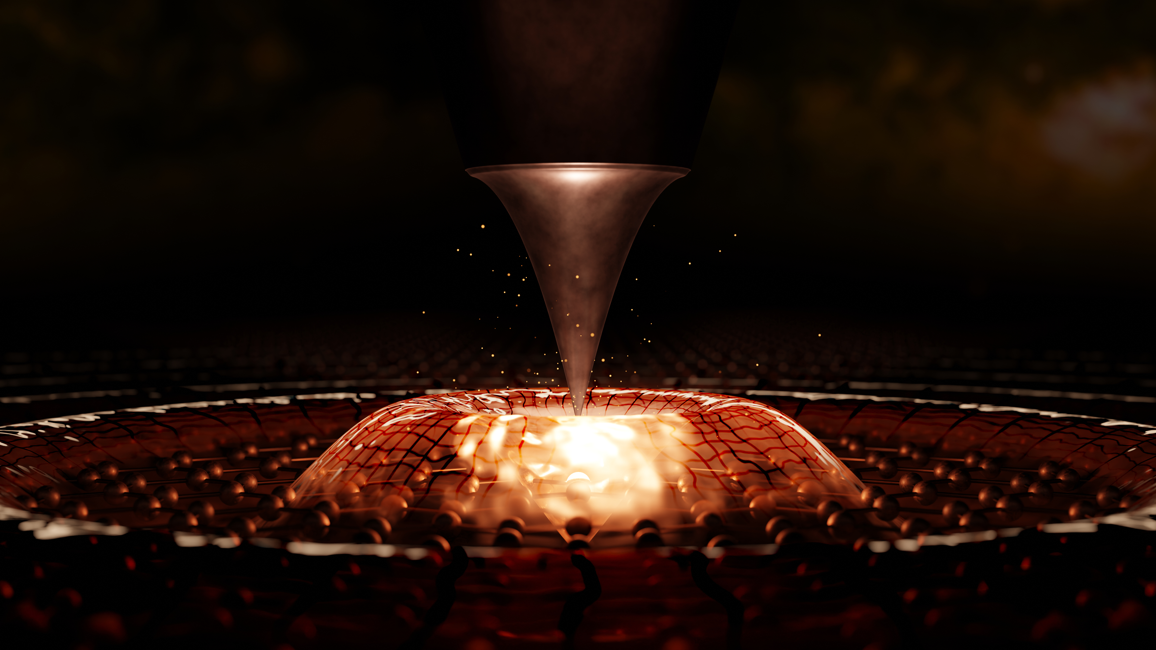 Such electron seas are typically found on the surfaces of metals or materials with metallic properties. In this case, the material was graphene – a so-called two-dimensional material composed of a single layer of carbon atoms. Instead of a stone, the scientists used laser pulses, focusing them on a sharp metallic tip positioned just above the material's surface. ”The light sets the electrons in the tip in motion,” explains Simon Anglhuber from the Institute of Experimental and Applied Physics of the UR. “The resulting oscillations exert a force on the electrons in graphene. This generates a circular electron density wave that propagates through the graphene beneath the tip. The wave can reflect off the edges of the sample and travel back to the tip. These reflections can then be measured optically by reversing the previous process and converting the electron wave back into light. By precisely moving the tip over the sample, the researchers could record a film showing the wave's oscillation at various locations over time.