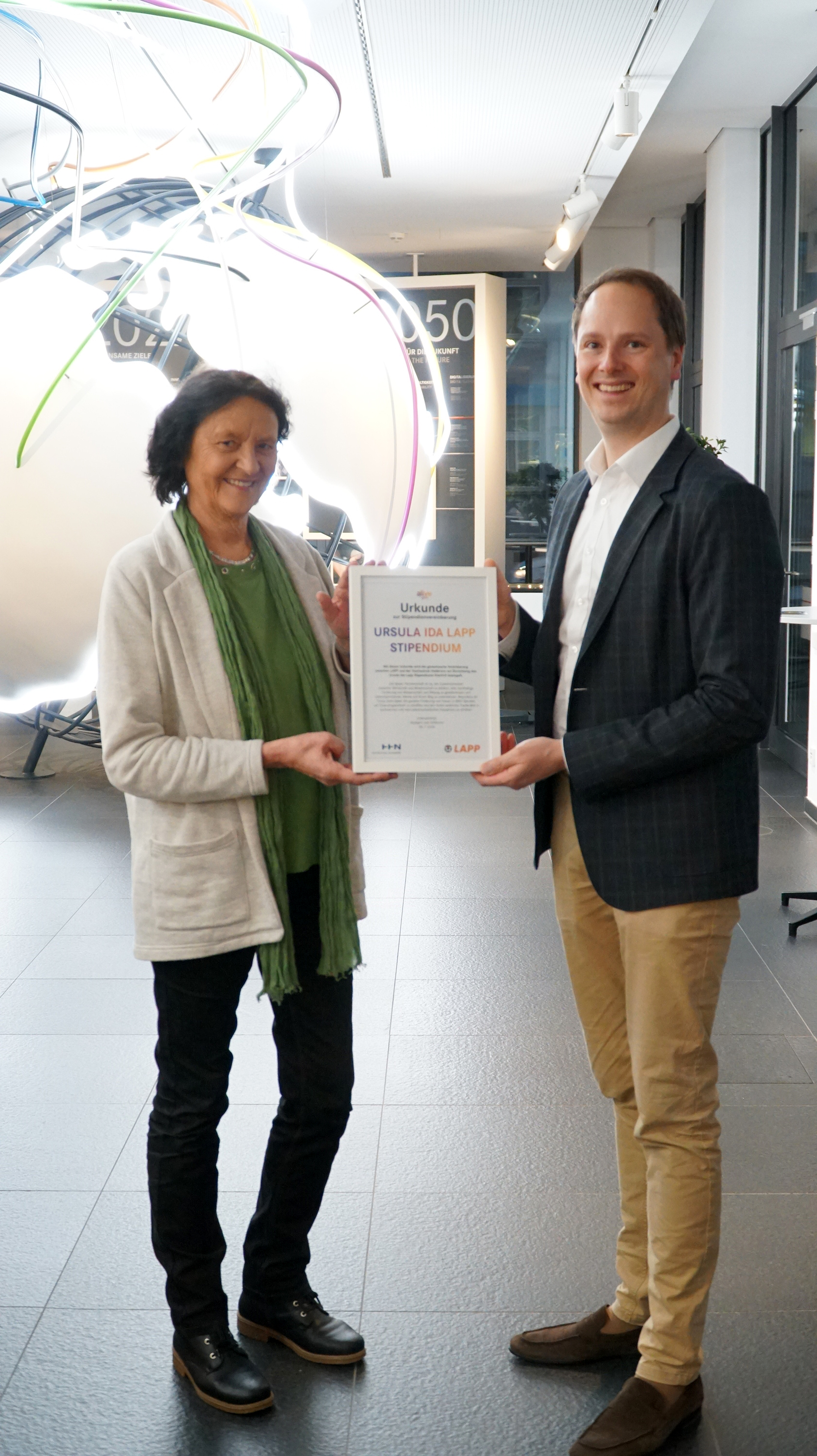 • Das nach der Gründerin des Familienunternehmens benannte “Ursula Ida Lapp Promotions-Stipendium" unterstützt weibliche Promovierende mit einer Gesamtförderhöhe von 80.000 bis zu 100.000 Euro.