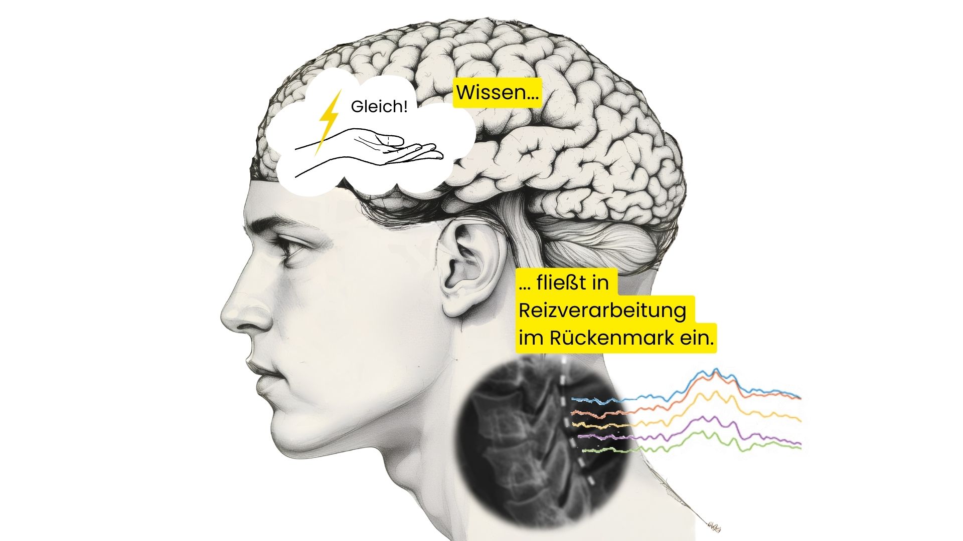 Um die Ergebnisse zu überprüfen, führten die Forschenden ein ähnliches Experiment mit gesunden Personen durch. Hier wurden die Signale nicht-invasiv über Elektroden am Hals gemessen. Auch hier bestätigte sich: Vorwissen beeinflusst die Signalstärke – und das bereits im Rückenmark.