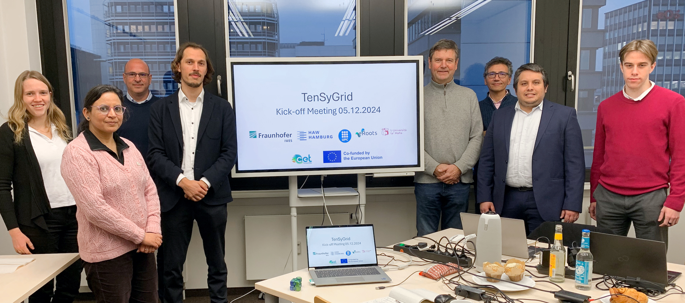 Im Verbundforschungsprojekt TenSyGrid (Tensors for System Analysis of Converter-dominated Power Grids) sollen diese EMT-Simulation mittels multilinearer Modelle unterstützt werden. Die Universitat Politècnica de Catalunya - BarcelonaTech (UPC), eRoots Analytics, die Hochschule für Angewandte Wissenschaften Hamburg (HAW), die University of Malta und das Fraunhofer IWES als Koordinator des Projektes bündeln dafür ihre Kompetenzen. Beim Projekt-Kick-off im Dezember 2024 sprachen die Partner über ihre Perspektiven und Ziele für das Projekt.
