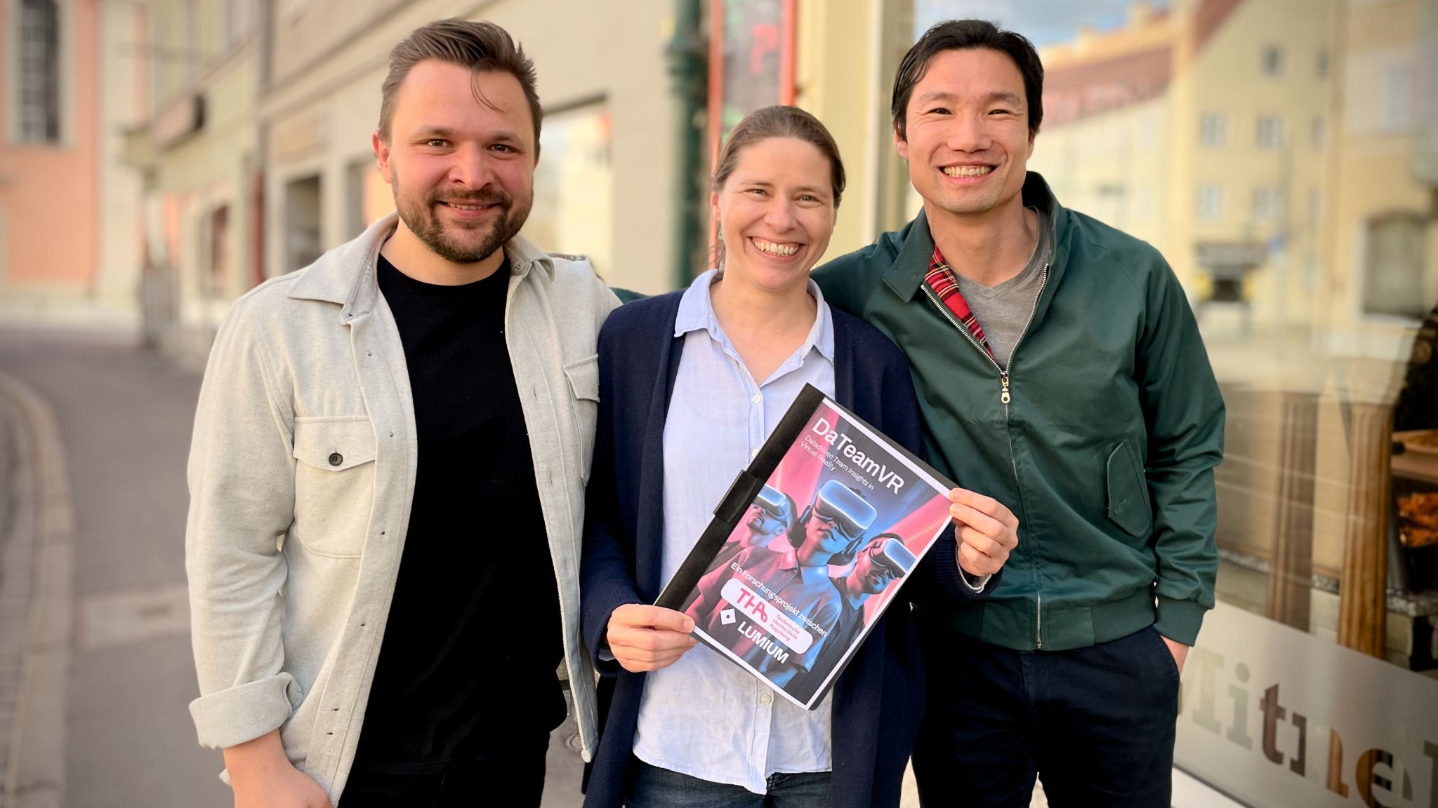 Das interdisziplinäre Forschendenteam der Technischen Hochschule Augsburg (THA) unter der wissenschaftlichen Leitung von Prof. Dr. Simone Kubowitsch, Professorin für Wirtschaftspsychologie an der THA Business School, und Prof. Dr. Jianing Zhang, Professor für Applied Data Science an der THA und Lead Scientist am Technologietransferzentrum Data Science und Autonome Systeme in Landsberg am Lech, erhält zusammen mit dem Team von Entwicklern und Anbietern von VR-Umgebungen unter der Leitung von Lukas Karwan, CEO und Head of Content der Lumium GmbH, für das Forschungsprojekt „DaTeam-VR – Datadriven Team Insights in Virtual Reality“ eine Förderung von rund 610.000 Euro im Rahmen der Förderlinie „Digitalisierung“ des Bayerischen Verbundforschungsprogramms (BayVFP) des Freistaates Bayern mit einem Gesamtfördervolumen von 1,1 Mio. Euro. Die Projektlaufzeit beträgt drei Jahre und endet 2027.