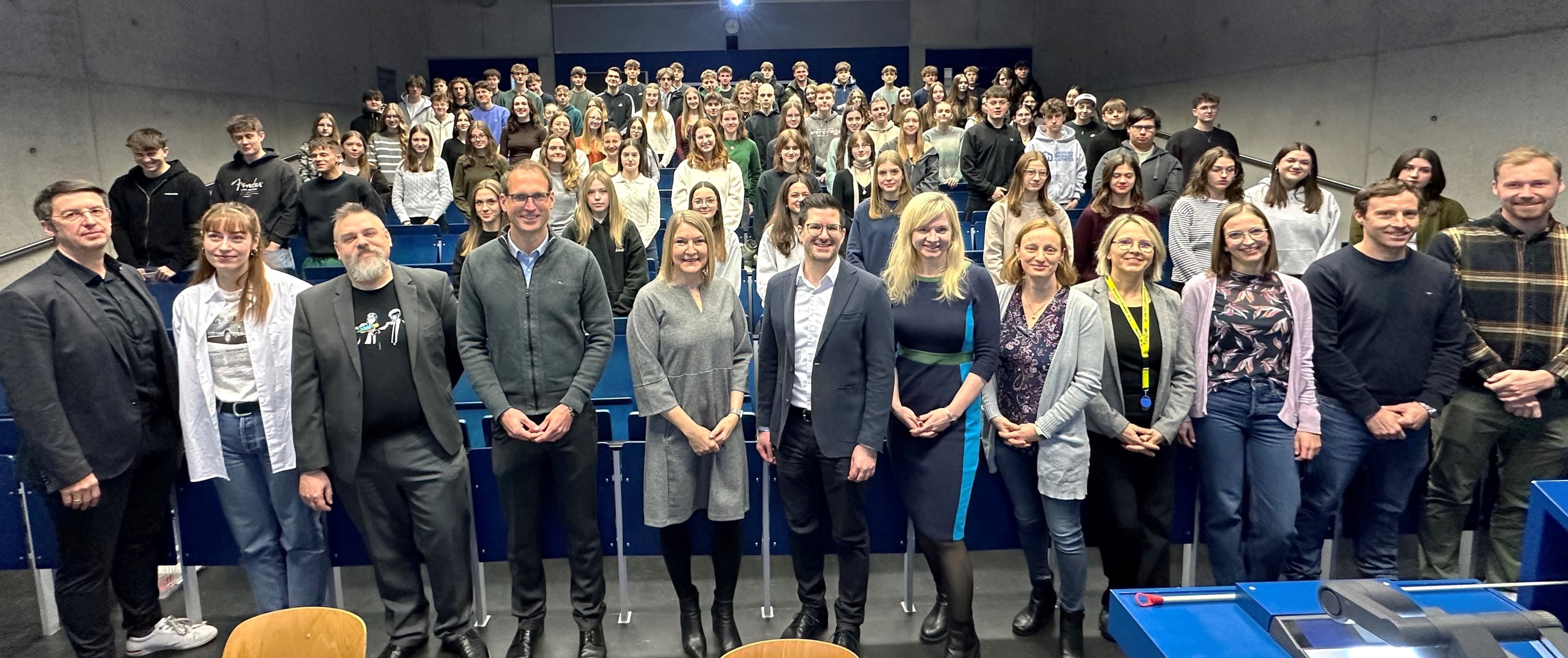 Ein besonderer Höhepunkt des Tages war der Besuch der verschiedenen Fakultäten: Hier bot unter anderem Prof. Dr. Andreas Lesser, selbst ehemaliger Schüler des JMF, eine Laborführung im Bereich Maschinenbau an und Studierende der Fachschaft Sozial- und Gesundheitswissenschaft beantworteten in lockerer Runde Fragen zum Studium und führten durch die Räumlichkeiten der Hochschule. Beim abschließenden Vortrag von Prof. Dr. Sabine Jaritz wurde der Weg von einer ersten Themenidee bis hin zur wissenschaftlichen Fragestellung und Zitierweise aufgezeigt – eine wertvolle Vorbereitung für das wissenschaftliche Arbeiten in der Oberstufe.