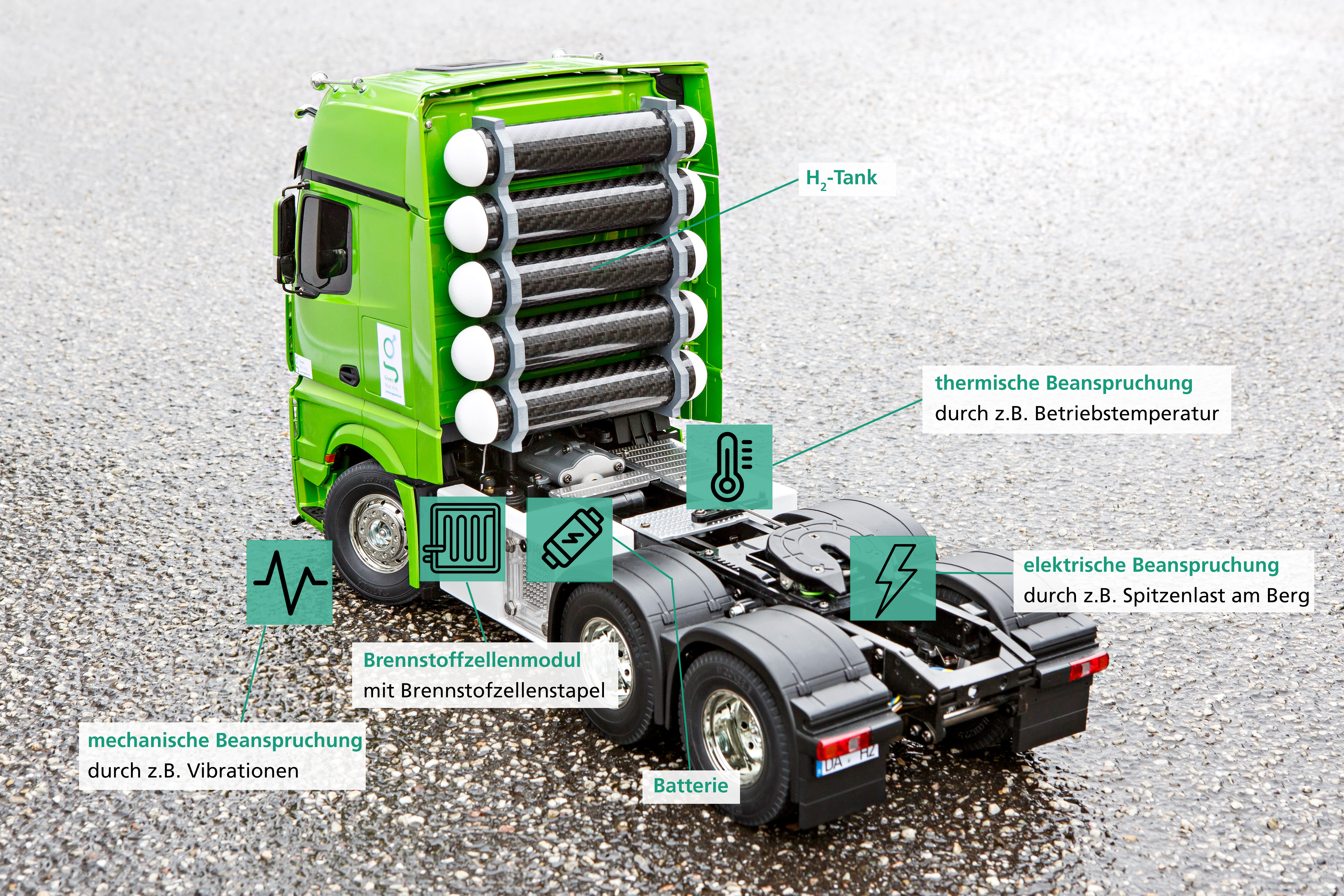 Für die Energiebereitstellung in mobilen Systemen werden Niedertemperatur-Polymerelektrolytmembran-Brennstoffzellen (NT-PEM-BZ) zu einem Stapel kombiniert. Der Einsatz dieser Brennstoffzellen-Stapel in beispielsweise Nutzfahrzeugen unterliegt einer Vielzahl von hochkomplexen und überlagerten multiphysikalischen (mechanisch, thermisch und elektrisch) und chemischen Belastungen. Die Auswirkungen dieser Beanspruchungen auf die Sicherheit und Zuverlässigkeit der BZ-Stapel sind bisher nicht ausreichend erforscht. Neue Zuverlässigkeitsbewertungsmethoden bieten hier ein enormes Potenzial, indem sie eine tiefere Einsicht in die komplexen Belastungen ermöglichen und die Zuverlässigkeit und Sicherheit der Brennstoffzellsysteme signifikant verbessern können.