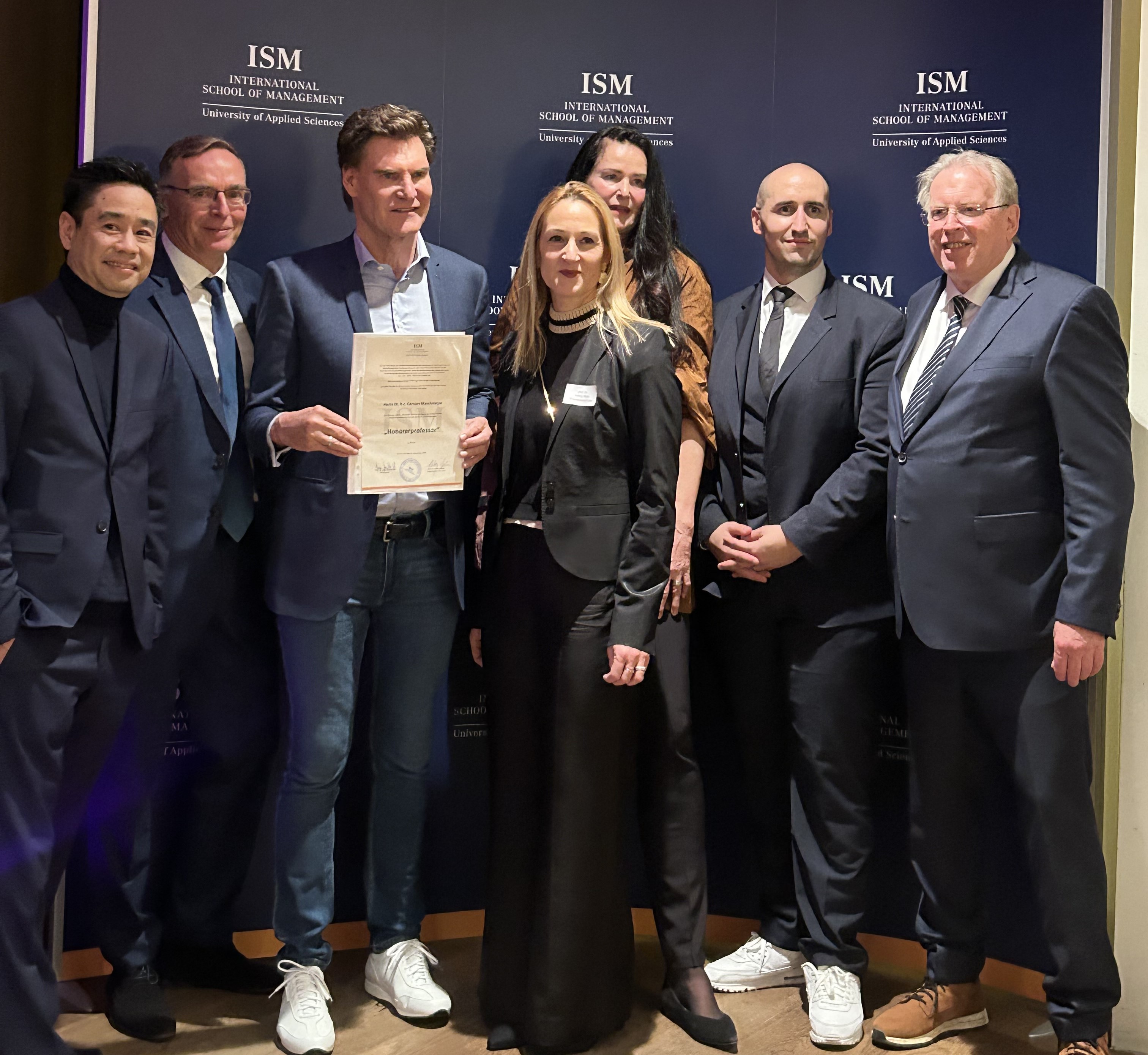 The International School of Management (ISM) has produced a remarkable academic achievement and over 3,000 specialists at the Munich campus - with additional qualifications for international tasks in business. The ISM Executive Board took the anniversary celebration as an opportunity to award Dr. Carsten Maschmeyer an honorary professorship. In his acceptance speech, the long-time start-up promoter, who has also worked at ISM, spoke of a high level of personal motivation that drives him to pass on his experience to the next generation of founders: “We need courageous, creative minds who are not deterred by obstacles.”