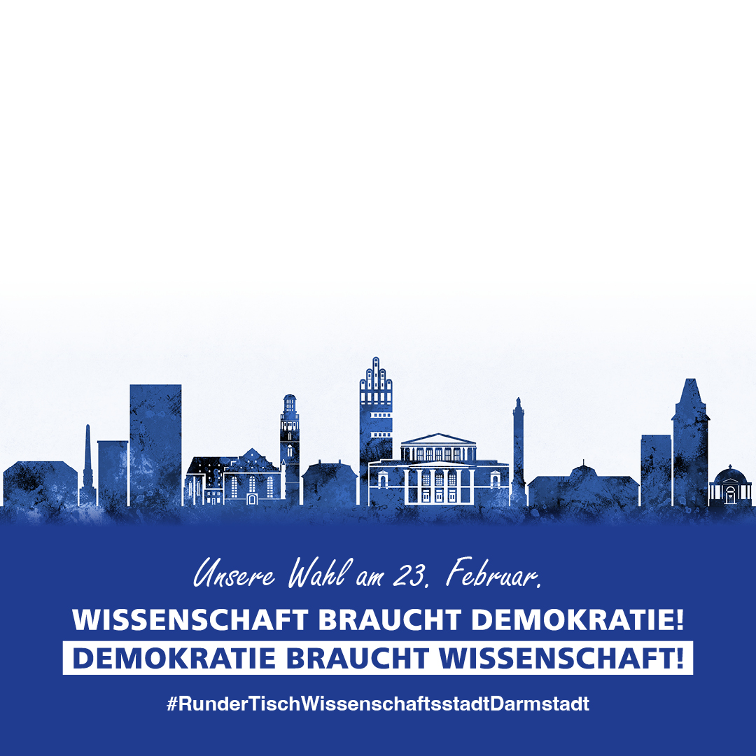 Mit der Formulierung „Demokratie braucht Wissenschaft – Wissenschaft braucht Demokratie. Unsere Wahl am 23. Februar“ werden in der Woche vor der Wahl wissenschaftliche Institutionen und Akteure unter dem Hashtag #RunderTischWissenschaftDarmstadt auf die Bedeutung der Bundestagswahl für die Wissenschaft hinweisen.