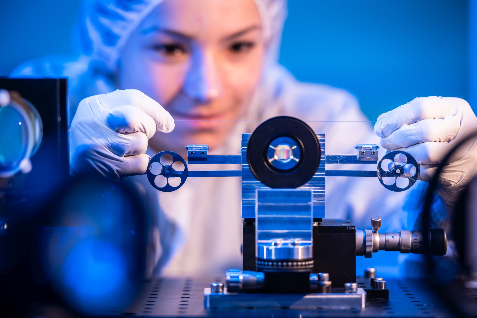 Klein meisterte die Herausforderung, indem sie über ein Dutzend der nur sechs Mikrometer kleinen FBG in mehreren Belichtungsprozessen aneinanderreihte. Dabei kam es darauf an, nahtlos zu arbeiten. »Das Schreibverfahren wäre bei einer eckigen Kerngeometrie wesentlich einfacher gewesen«, berichtet sie. Das Einschreiben der FBG bis an die äußersten Ränder sei in der erforderlichen Präzision enorm kompliziert gewesen. Doch im Sinne maximaler Reflektivität des Gitters für einen effizienten Resonatoraufbau des Faserlasers war diese lückenlose Präzision alternativlos.