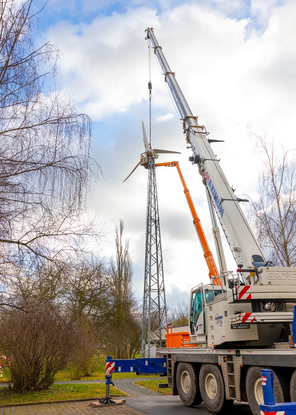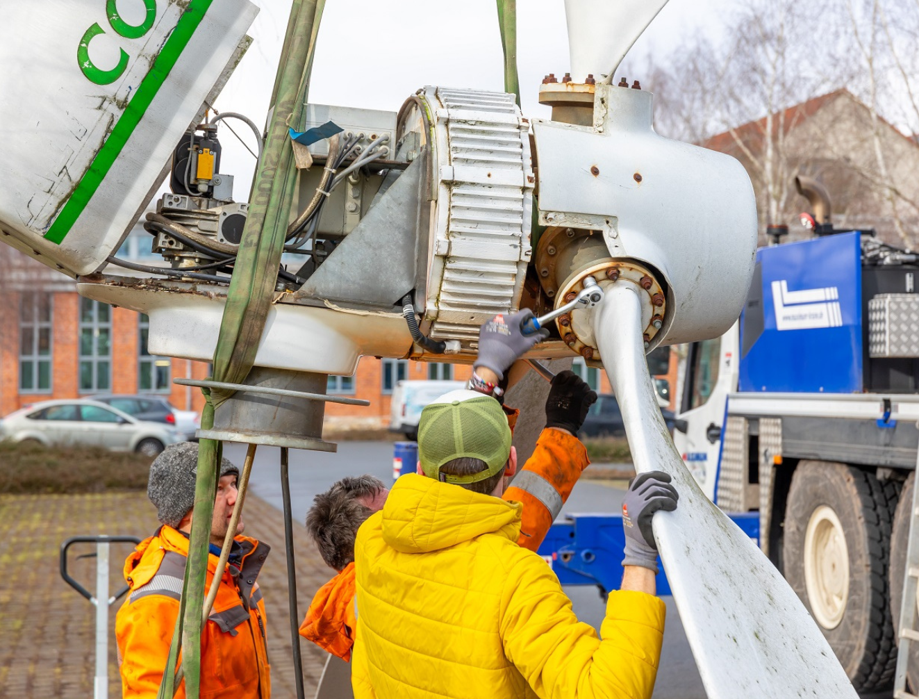 Die Hochschule Nordhausen setzt sich aktiv für Nachhaltigkeit und den Einsatz erneuerbarer Energien ein. Ein sichtbares Zeichen dafür ist seit ca. 20 Jahren die Windkraftanlage auf dem Campus, die erneuerbaren Strom generiert und in das Campusnetzwerk einspeiste. Aufgrund eines technischen Defekts, dessen Ursache bei einer ersten Untersuchung nicht festgestellt werden konnte, wurde die Anlage nun demontiert, um einer gründlichen Wartung und Reparatur unterzogen zu werden.