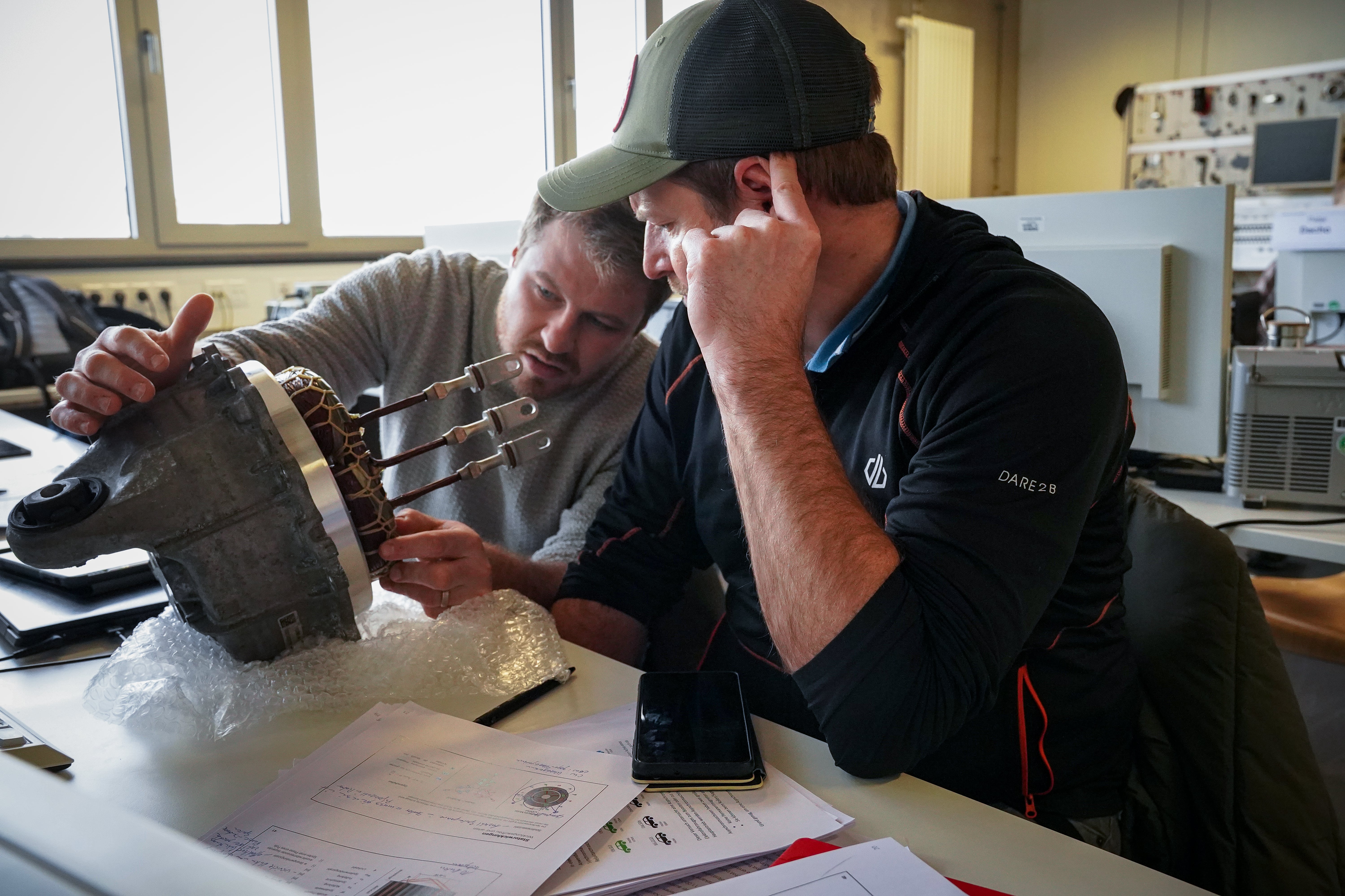 In Coburg beschäftigten sich die Berufsschul-Lehrenden zum Beispiel mit verschiedenen Motortypen und ihrer Anwendung im Elektro-Fahrzeug, mit Kennlinien der Motoren, der Auslegung aber auch der Kühlung, Fragen nach Wirkungsgradbereich und Leistungsdichte. Dabei ging es aber nicht nur um Theorie: Im Labor wurden Elektroantrieb eines Tesla Model Y und eines Mercedes EQC in Einzelteile zerlegt und im Detail besprochen. Promovierende und Laboringenieure der Hochschule gaben Einblicke in ihre Themen, außerdem gab es spannende Beiträge von Gast-Dozierenden beispielsweise der Automobil-Zeitschrift Auto Motor und Sport und aus dem jungen Münchener Hightech-Unternehmen Deepdrive: Es entwickelt wegweisende E-Antriebseinheiten mit höherer Reichweite, die dabei günstiger sind, weniger Platz, weniger Materialien und weniger seltene Erden benötigen.