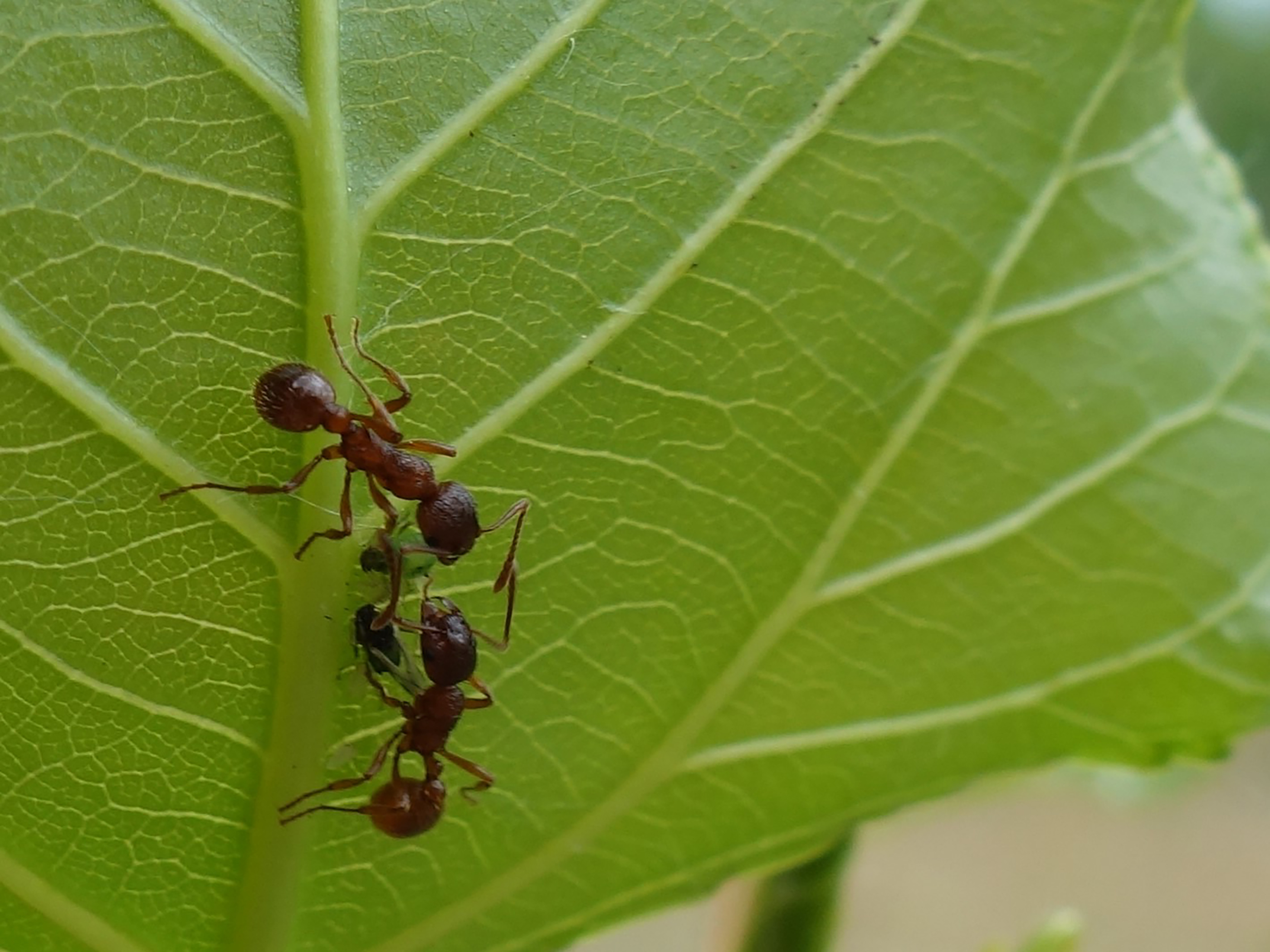 Ein weiteres interessantes Ergebnis dieser Studie ist daher eine Beobachtung, die die Forschenden in Freilanduntersuchungen gemacht haben. Der endophytische Pilz scheint auch die Interaktionen zwischen Blattläusen und Ameisen zu verändern, die junge Schwarzpappeln besiedeln. Es handelt sich um einen Mutualismus, eine Symbiose, von der sowohl die Ameisen profitieren, die den Honigtau der Blattläuse trinken, als auch die Blattläuse, die von den Ameisen vor Fressfeinden geschützt werden. Pflanzen, die zuvor mit dem Endophyten infiziert worden waren, wurden häufiger von Blattläusen, aber weniger von Ameisen besiedelt. Dies ist wahrscheinlich auf die Konzentration von Stachydrin in ihrem Honigtau zurückzuführen. „Der Pilz scheint sogar in der Lage zu sein, eine mutualistische Beziehung zwischen Ameisen und Blattläusen zu manipulieren. Was hier genau passiert, müssen nun weitere Untersuchungen klären“, sagt Christin Walther.