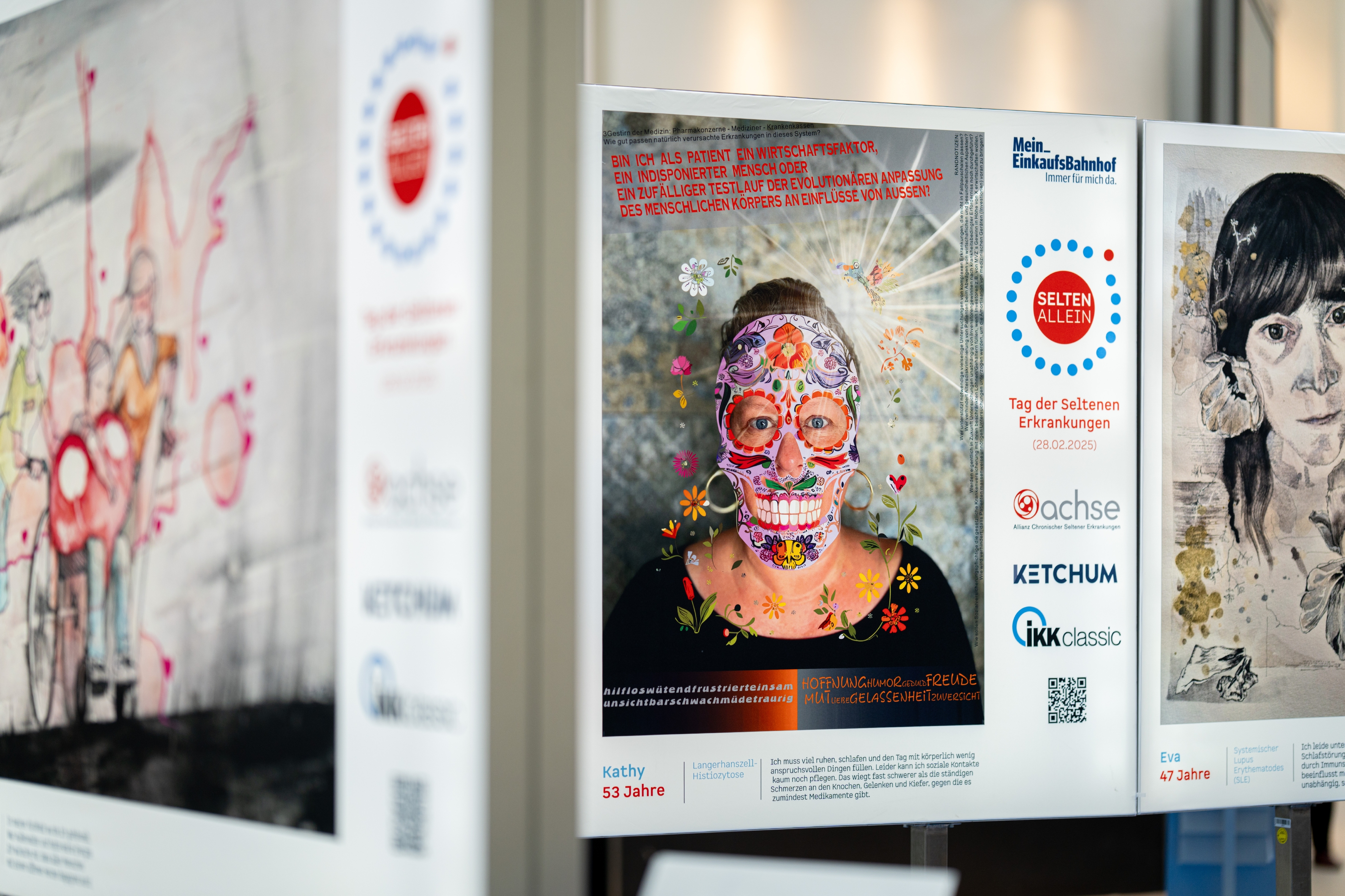 Uniklinikum Dresden beteiligt sich am Welttag der Seltenen Erkrankungen (28. Februar). | Ausstellung „Selten allein“ im Dresdner Hauptbahnhof und am Uniklinikum zeigt Kunst von Betroffenen. | Die Kunstwerke sind bundesweit in ausgewählten Einkaufsbahnhöfen und öffentlichen Orten zu sehen.