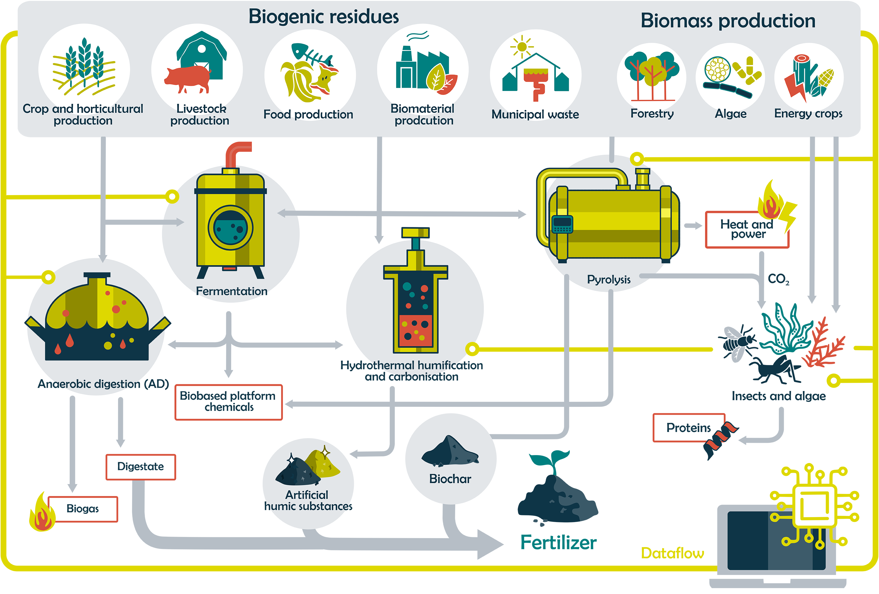 Dr Nader Marzban is a researcher at Leibniz Institute for Agricultural Engineering and Bioeconomy (ATB) and lead author of the conceptual paper "Smart Integrated Biorefineries in Bioeconomy: A Concept Toward Zero-Waste, Emission Reduction, and Self-Sufficient Energy Production". He describes it like this: "There are many conversion technologies that generate valuable materials from biomass. These include among others microbial fermentation, such as anaerobic digestion, and pyrolysis. Anaerobic digestion, for example, produces biogas, whereby the remaining digestate still contains valuable organic compounds. Instead of using it as a fertiliser, as is traditionally the case, we can convert this digestate into artificial humic substances through hydrothermal humification. When introduced into the soil, it stabilises bacterial diversity and improves soil health. Another promising approach is the combination of anaerobic fermentation with pyrolysis, i.e. carbonisation. Here, biochar acts as a catalyst and increases the efficiency of biogas production. At the same time, the biochar is enriched with nutrients. It can thus keep nutrients available in the soil for a long time and – depending on the process conditions – store carbon for more than a century.