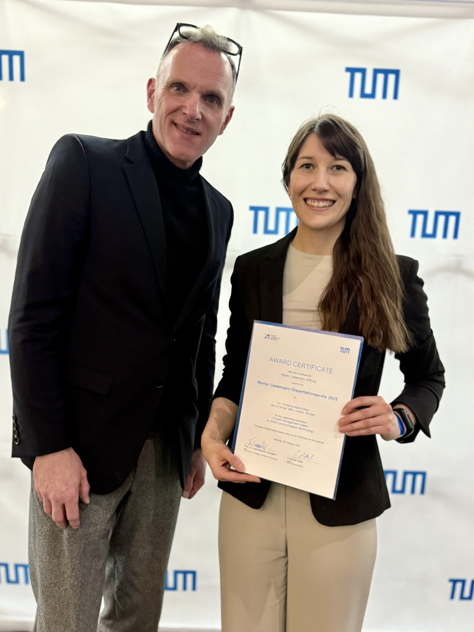 Christina Maria Mayr absolvierte ein duales Studium der Fahrzeugtechnik sowie ein Masterstudium der Technischen Berechnungen an der Fakultät für Maschinenbau der Hochschule München. Für ihre kooperative Promotion wechselte sie innerhalb der Hochschule an die Fakultät für Informatik und wurde von Prof. Dr. Gerta Köster (Hochschule München) und Prof. Dr. Hans-Joachim Bungartz (Technische Universität München) betreut. Ihre Dissertation zum Thema Crowd Management wurde mit Summa Cum Laude ausgezeichnet.