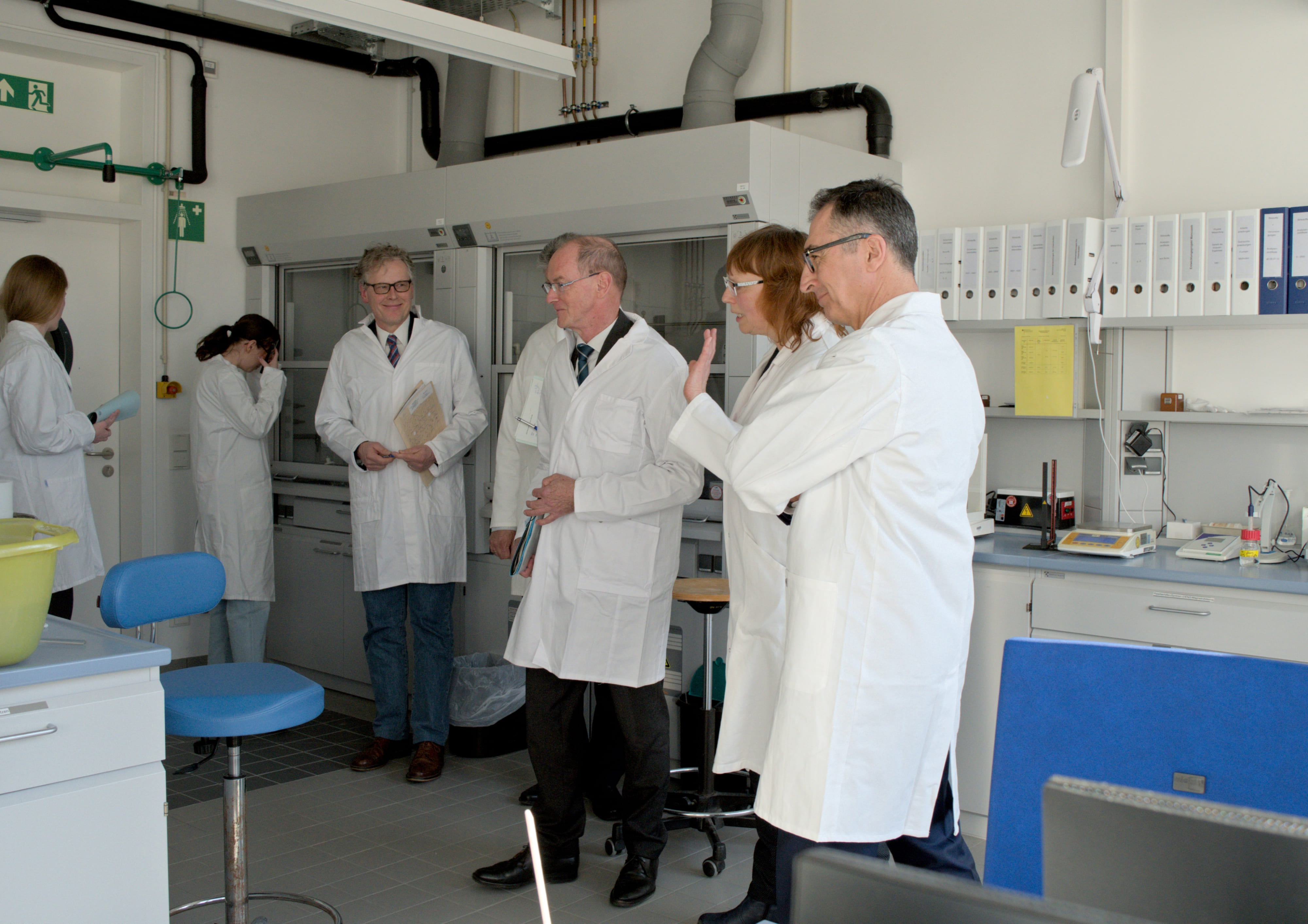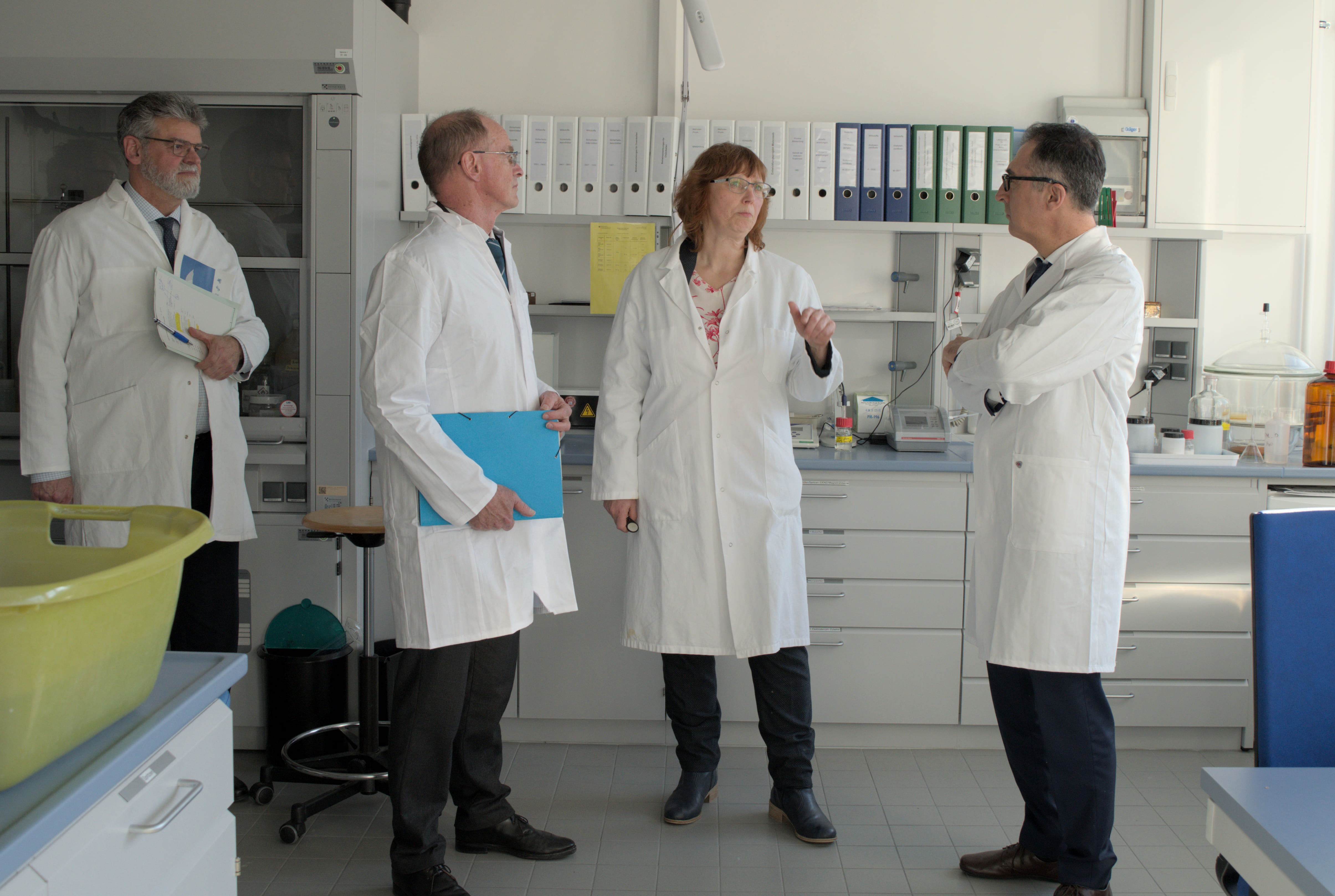 Am Standort Braunschweig ist unter anderem die Abteilung Pflanzenschutzmittel ansässig. Cem Özdemir ließ es sich deshalb nicht nehmen, einen Blick in das Labor für Formulierungschemie zu werfen, in dem die BVL-Fachleute Methoden entwickeln und nutzen, um die Qualität und Echtheit von Pflanzenschutzmitteln zu prüfen. Die Analysen des BVL tragen somit wesentlich zur sicheren Anwendung von Pflanzenschutzmitteln bei.