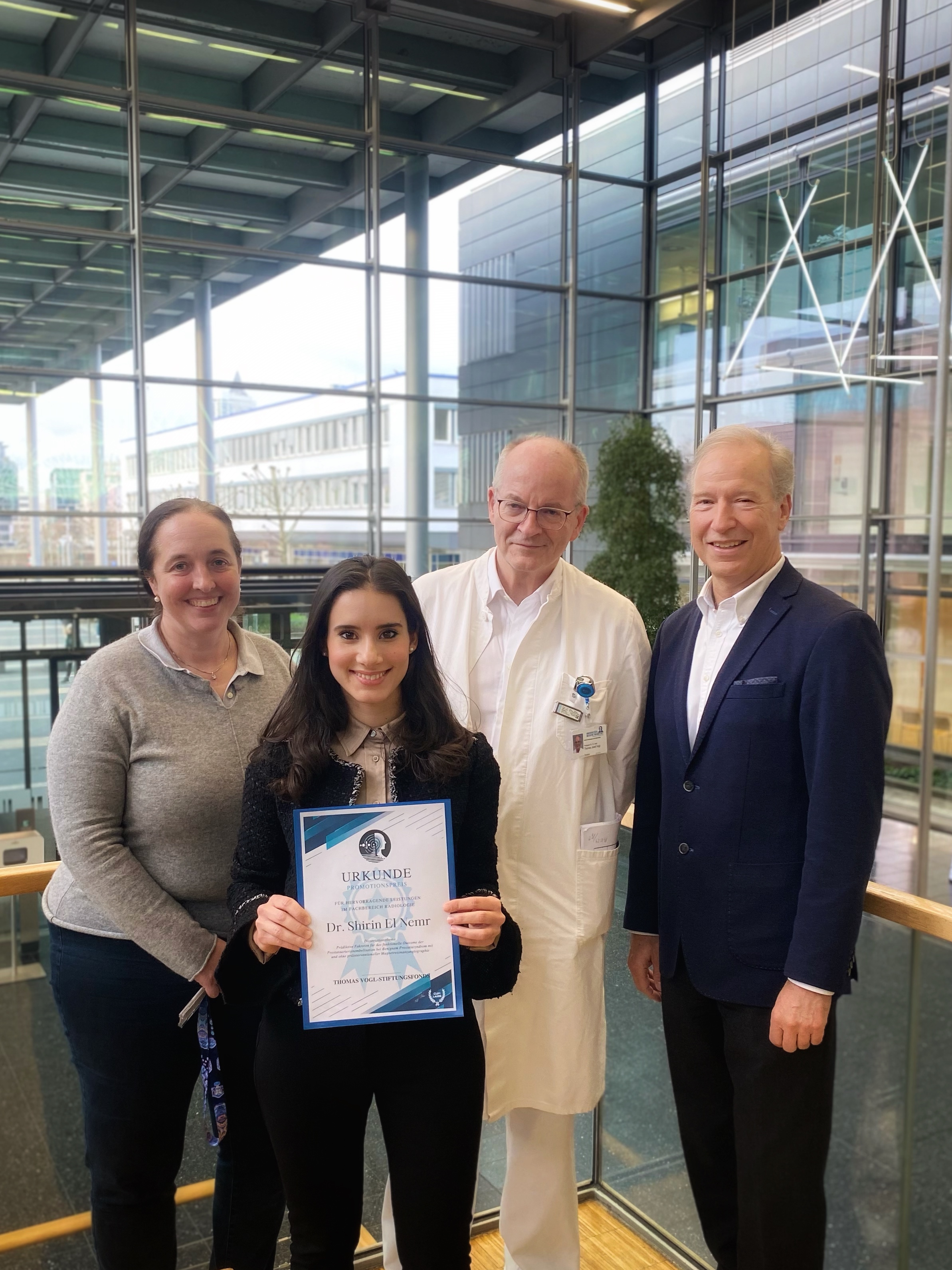Prof. Thomas Vogl, Stifter und Mitglied der Auswahlkommission, hebt hervor: „Die Dissertation von Dr. Shirin El Nemr hat uns durch ihre wissenschaftliche Tiefe und die Relevanz des Themas überzeugt. Wir freuen uns, dass wir mit dem Promotionspreis die exzellente Forschungsleistung von Dr. El Nemr würdigen können.“ Kommissionsmitglied Ekkehardt von Knebel Doeberitz meint: „Diese Arbeit zu einem ‚Männerthema‘ ist sehr interessant und auch für Nicht-Mediziner gut nachvollziehbar.“