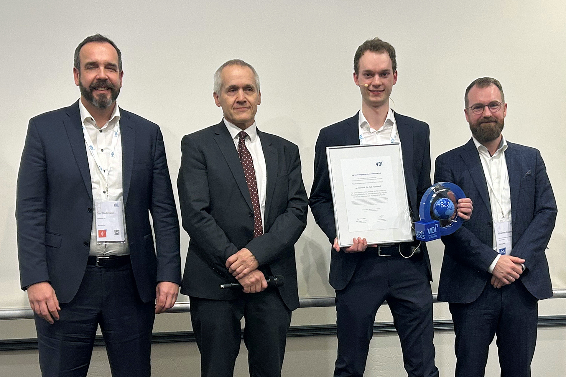 Mit diesem Preis würdigt der Fachbereich Kunststofftechnik des Vereins Deutscher Ingenieure e. V. (VDI) Hochschulabsolventinnen und -absolventen für besondere Leistungen im Bereich Nachhaltigkeit in der Kunststofftechnik aus und fördert dadurch den Nachwuchs auf diesem Fachgebiet. Der Titel der preisgekrönten Masterarbeit lautet „Analyse des Einsatzes von Recyclingmaterialien in der Spritzgussfertigung von Wirthwein exemplarisch am Bauteil Lüfterrad“.