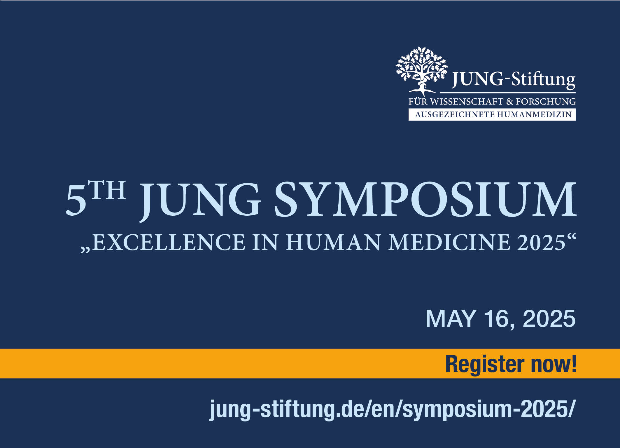 Those who wish to follow the symposium via livestream are asked to register online at https://jung-stiftung.de/en/symposium-2025/. A few days before the “Excellence in Human Medicine 2025” Jung Symposium, registrants will receive an access link by email. In-person attendance is also possible; advance registration is requested.