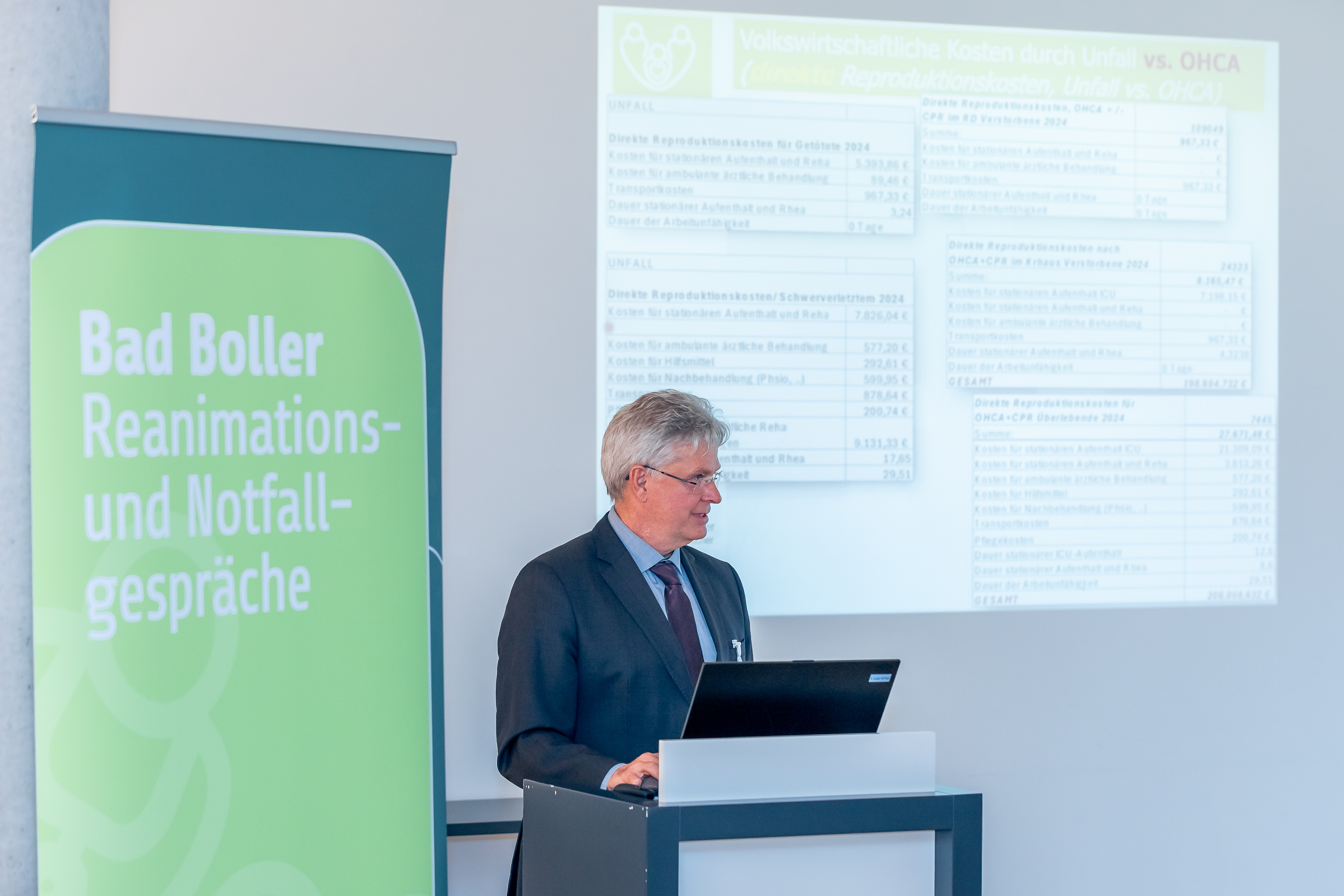 Im Rahmen der Bad Boller Reanimations- und Notfallgespräche, die einmal im Jahr von der Deutschen Gesellschaft für Anästhesiologie und Intensivmedizin e.V. (DGAI), dem Berufsverband Deutscher Anästhesistinnen und Anästhesisten e.V. (BDA) sowie dem Deutschen Reanimationsregister veranstaltet werden, hat Prof. Fischer erstmals umfassende Berechnungen zu den volkswirtschaftlichen Folgen von Herz-Kreislauf-Stillständen vorgestellt. Dabei betonen die drei Verbände: Es geht nicht darum, einen finanziellen Wert für ein Menschenleben zu berechnen. Vielmehr sollen die Daten verdeutlichen, dass jeder vermiedene Herz-Kreislauf-Stillstand und jede erfolgreiche Reanimation nicht nur individuelles Leid verhindert, sondern auch gesamtgesellschaftlich von großer Bedeutung ist.