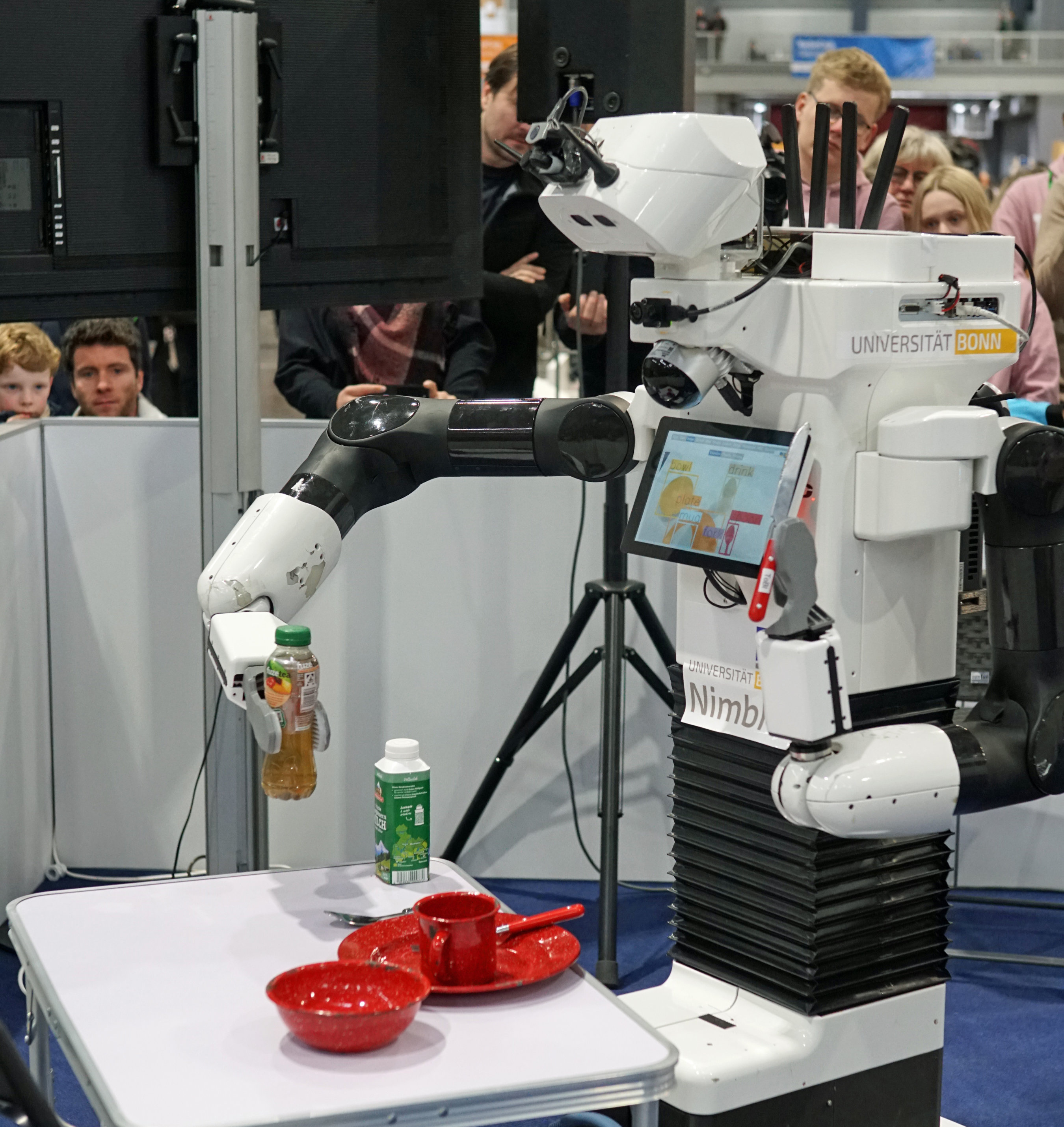Beim German Open-Wettbewerb der Haushaltsroboter hat das Team NimbRo der Universität Bonn souverän den Titel verteidigt. Vom 13. bis 16. März traten die Serviceroboter in Nürnberg bei den offenen deutschen Meisterschaften an. Die Assistenzroboter für Alltagsumgebungen werden am Lehrstuhl für Autonome Intelligente Systeme des Instituts für Informatik entwickelt. Sie interagieren mit Menschen durch ein Sprach-Dialogsystem, können Objekte greifen und ablegen sowie in Alltagsumgebungen navigieren.