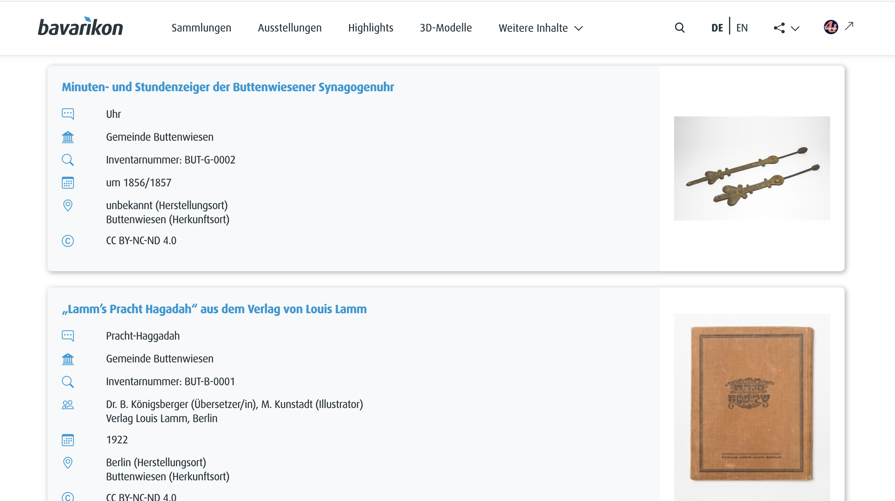 Das Forschungs-Team hat neben der digitalen Erfassung von Objekten vier virtuelle Ausstellungen kuratiert, die auf bavarikon.de zugänglich sind. Diese Ausstellungen widmen sich verschiedenen Aspekten des jüdischen Lebens in Bayerisch-Schwaben: