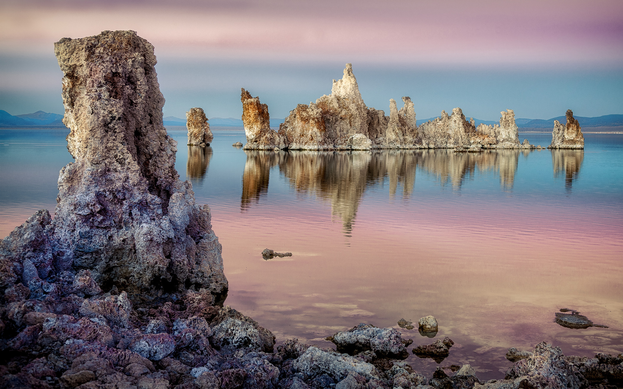 Ein Beispiel für einen solchen grossen Natronsee ist der Mono Lake in Kalifornien. Er ist etwa doppelt so gross wie der Zürichsee. Im Mono Lake bleibt die Phosphorkonzentration konstant hoch, sodass dort eine Vielzahl von Lebewesen gedeihen kann. Das ist entscheidend, weil in kleinen Seen der Phosphor verbraucht wird, bevor neue Mengen nachkommen können. Der Phosphor des Mono Lake wird also in hohen Konzentrationen erhalten, das heisst, es fliesst regelmässig viel Phosphor nach, ohne dass der Phosphorgehalt zu schnell sinkt.