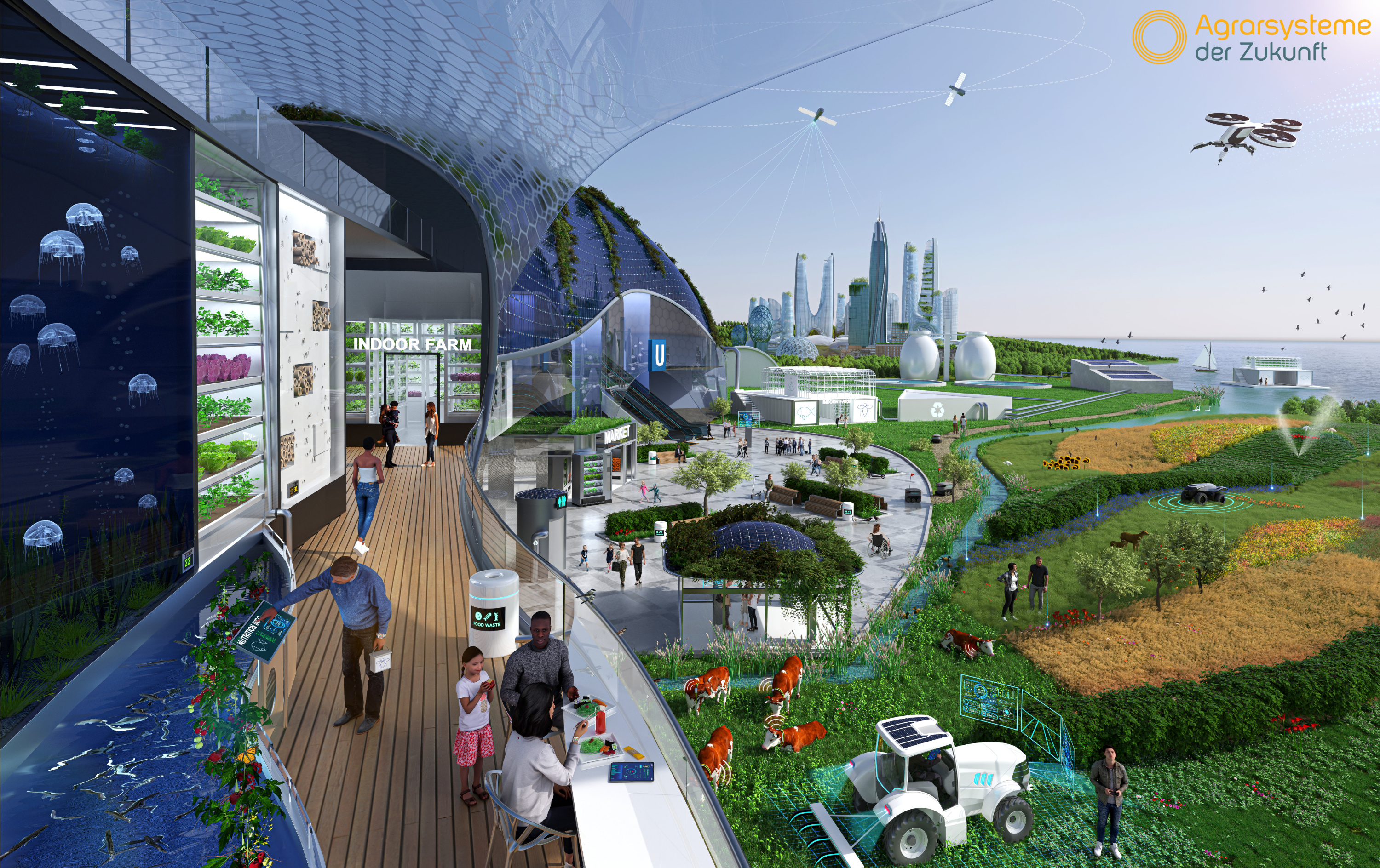 Seit 2019 fördert das BMBF die „Agrarsysteme der Zukunft“, um wegweisende Lösungen für eine nachhaltige, produktive und resiliente Landwirtschaft zu entwickeln. In der aktuellen Förderphase arbeiten sechs inter- und transdisziplinäre Forschungskonsortien an alternativen Nahrungsquellen, ressourceneffizienten Kreislaufsystemen sowie Smart- und Hightech-Lösungen mit Künstlicher Intelligenz und digitalen Prozessen zur Produktion von Nahrungs- und Futtermitteln: