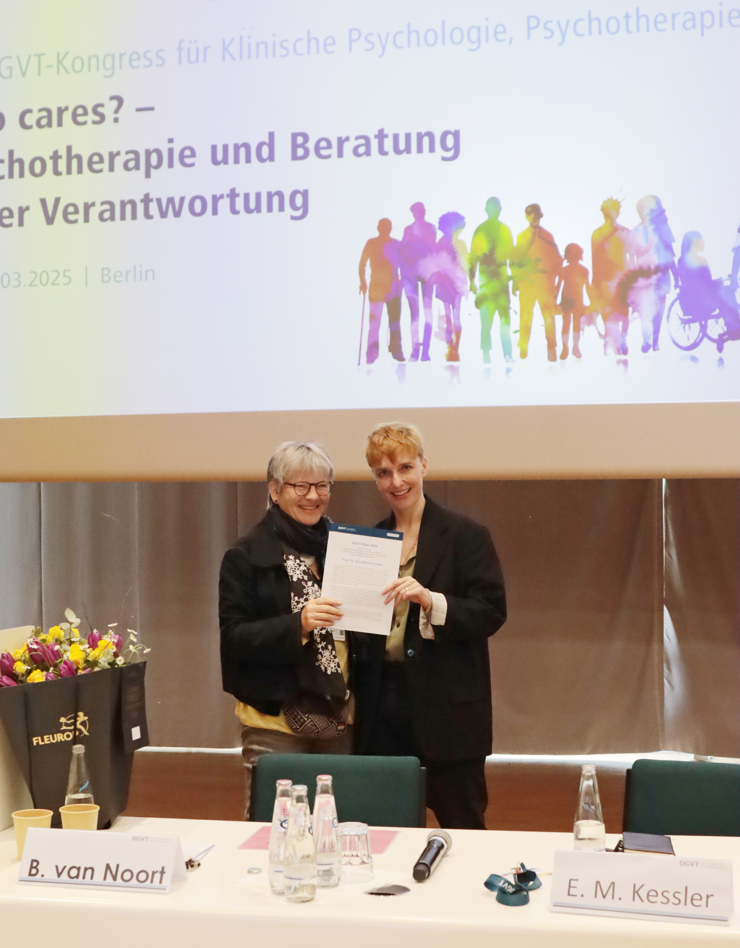 Monika Bormann, Mitglied des geschäftsführenden Vorstandes der DGVT, gratulierte Prof. Kessler herzlich zu dieser verdienten Auszeichnung und würdigte ihren außergewöhnlichen Einsatz für die Verbesserung der psychotherapeutischen Versorgung älterer Menschen.