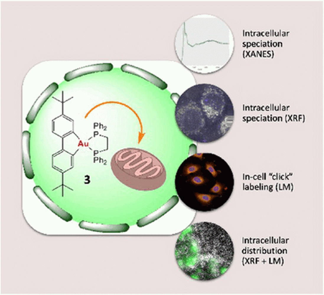 Gegenüber Tumorzellen zeigten sie sich toxisch, am aktivsten war ein „dppe-Komplex“ (Biphenyl-Gold(III)-Komplex mit 1,2-Diphenylphosphinoethan-(dppe)-Liganden). Dem Team gelang mit einer speziellen Ausführung der Synchroton-Kryo-Röntgennanoanalyse, Gold und andere chemische Elemente in tiefgefrorenen Lungenkrebszellen mit einer Auflösung im Nanometerbereich zu „kartieren“ und den dppe-Komplex zu lokalisieren: Er wird selektiv in den Mitochondrien, den zellulären „Kraftwerken“, akkumuliert. Vorteil der Methode: Eine Markierung, die Ergebnisse verfälschen könnte, ist nicht notwendig. So lassen sich Zellen in einem nahezu nativen Zustand auf der Nanoskala untersuchen.